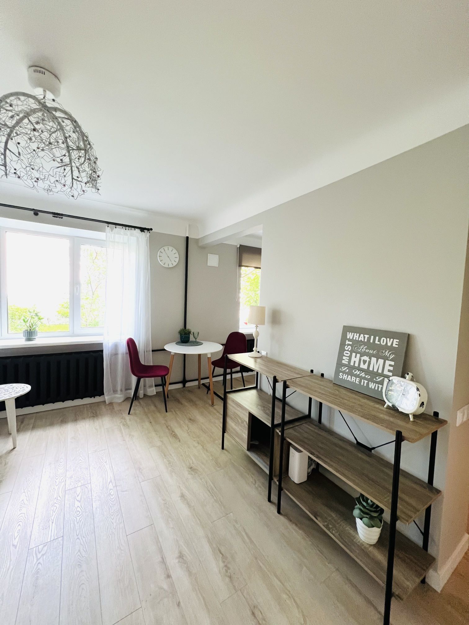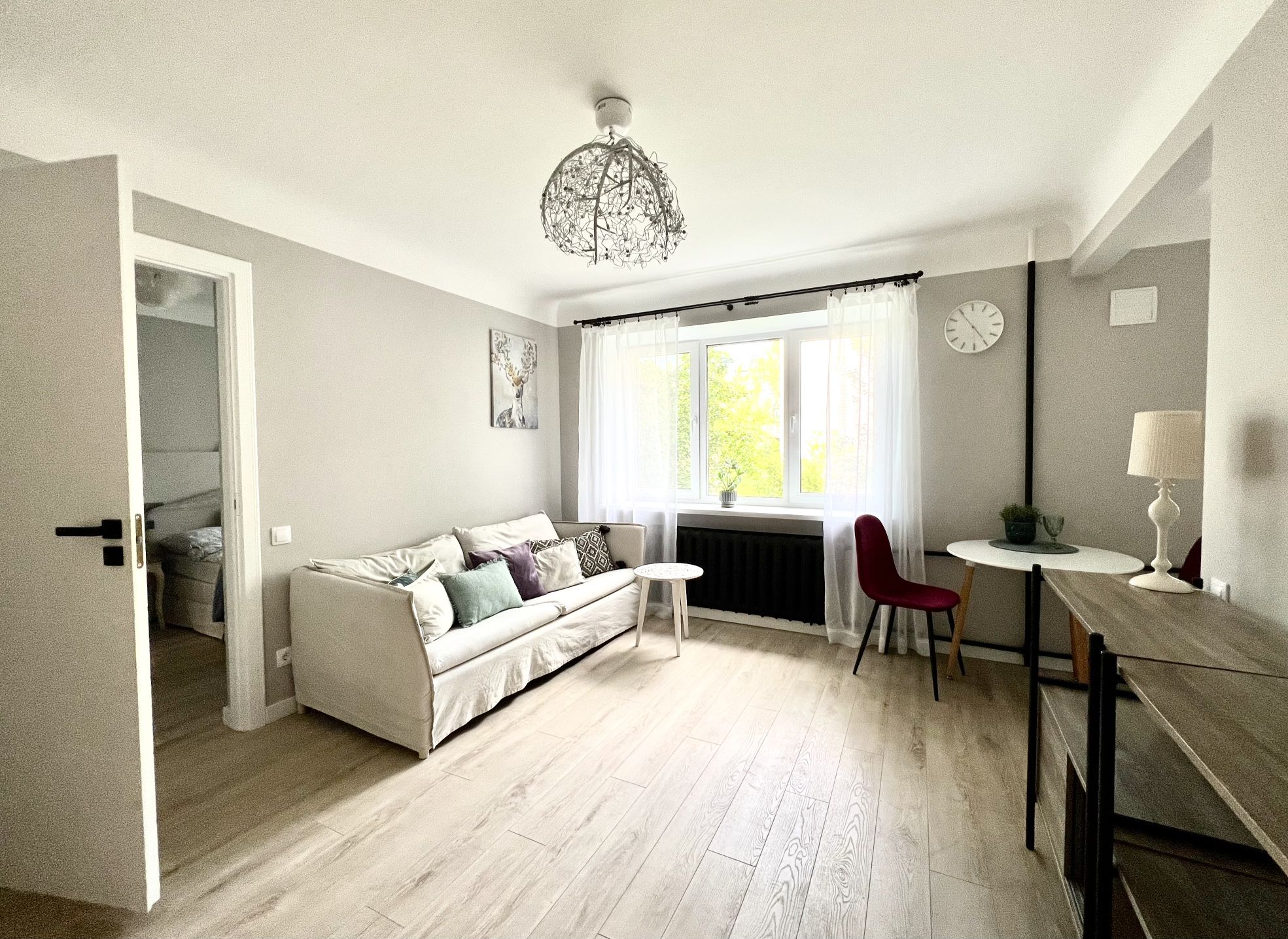 For sale bright and cozy 2-room apartment in Teika. Everything is new, beautiful and fresh, no one has lived in it. The apartment has just undergone a high-quality full overhaul, new electrical wiring, plumbing, high-quality 3-glazed windows. The apartment has been re-planned and the redevelopment has been coordinated. Layout - 2 rooms, bathroom with bathtub, kitchen. The kitchen is fully equipped (built-in appliances: refrigerator, oven, washing machine, dishwasher) and the rooms are furnished. Well-maintained staircase. Dry storage rooms in the basement. Very well-developed infrastructure. Green courtyard. Free parking for a car at the house. Five minutes away is the Domina shopping center, shops, schools and kindergartens nearby