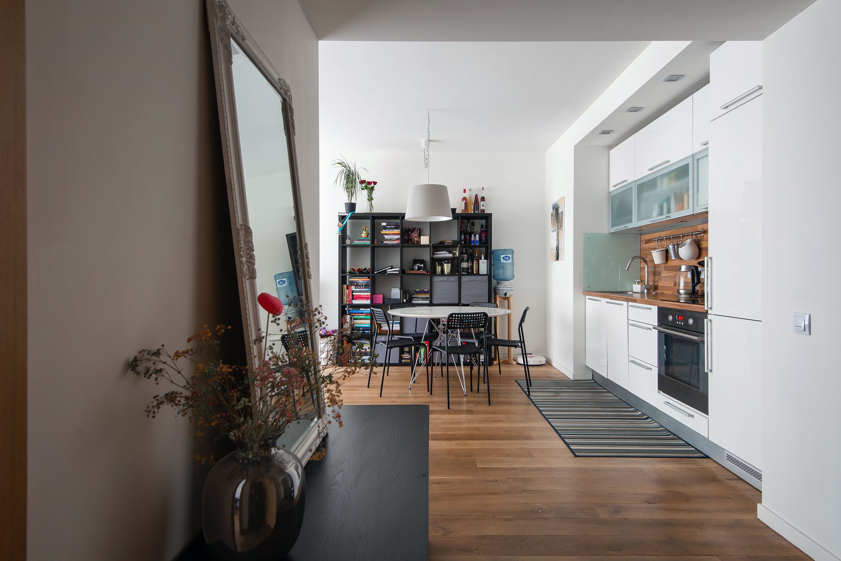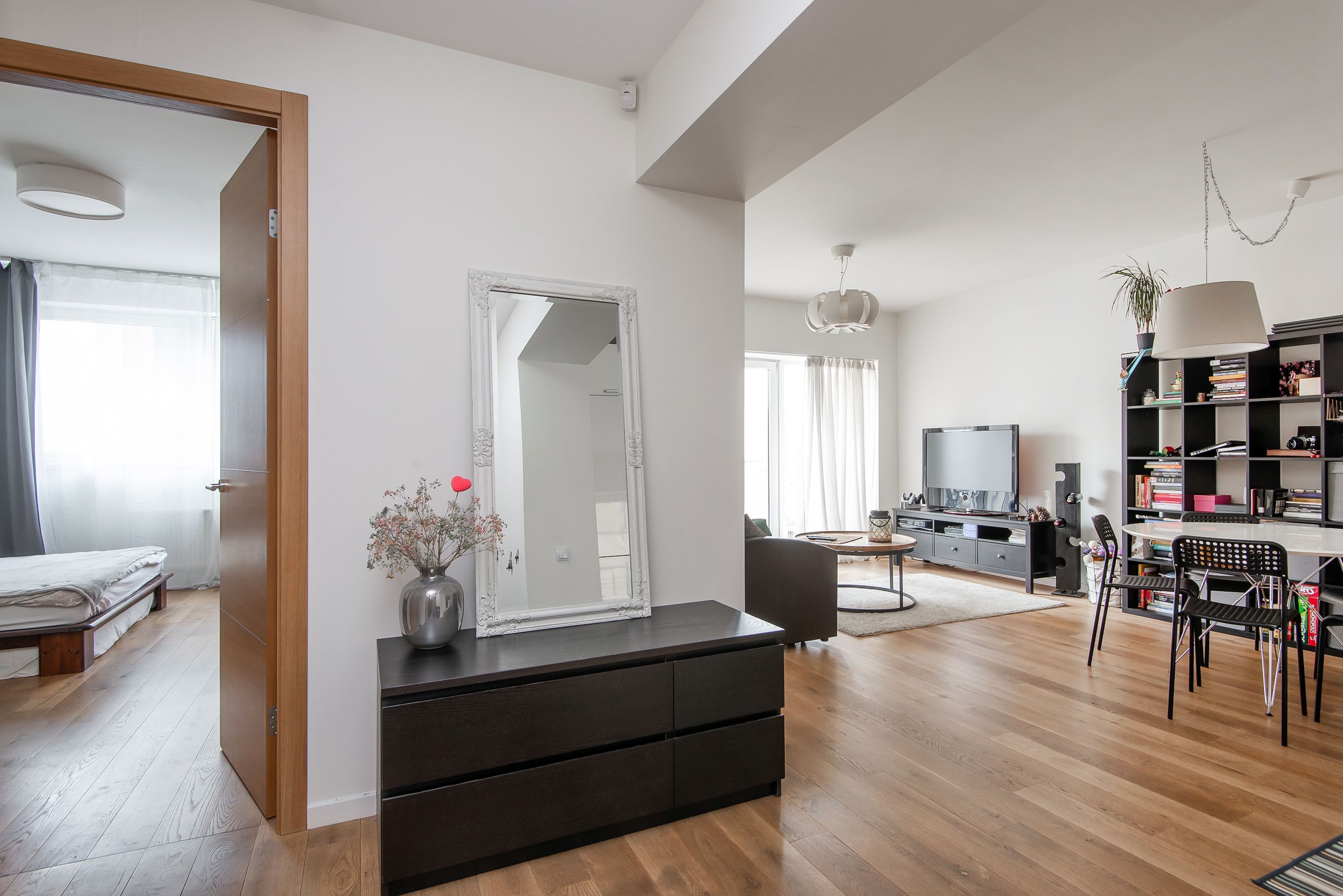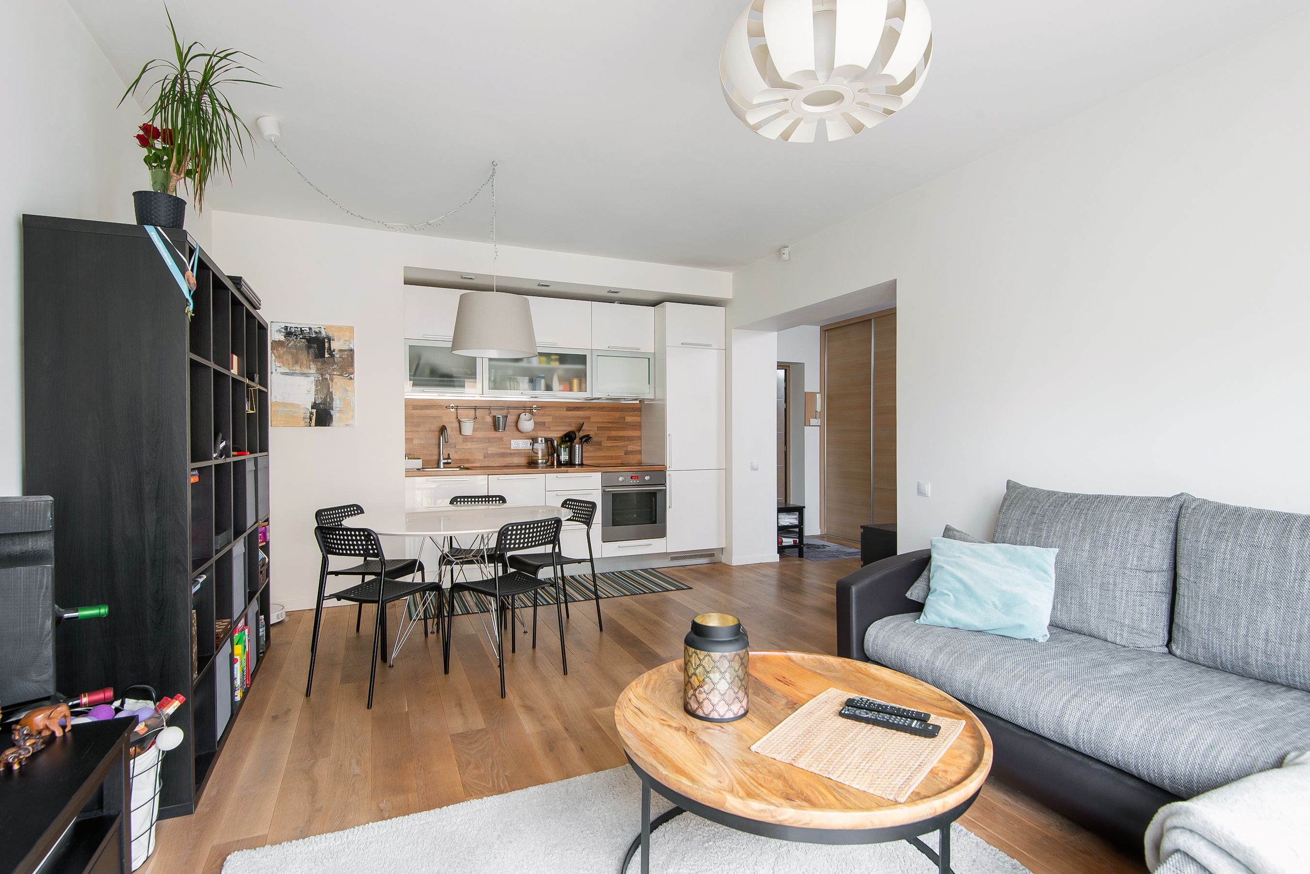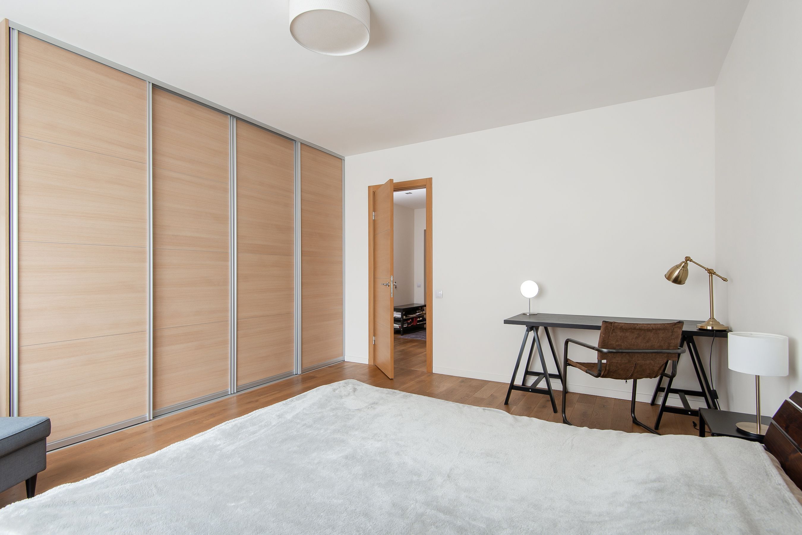 Dzīvoklī ir skaistasm koka grīdas, lieli iebūvētie skapji, kā arī pilnībā aprīkota virtuve un vannasistaba.