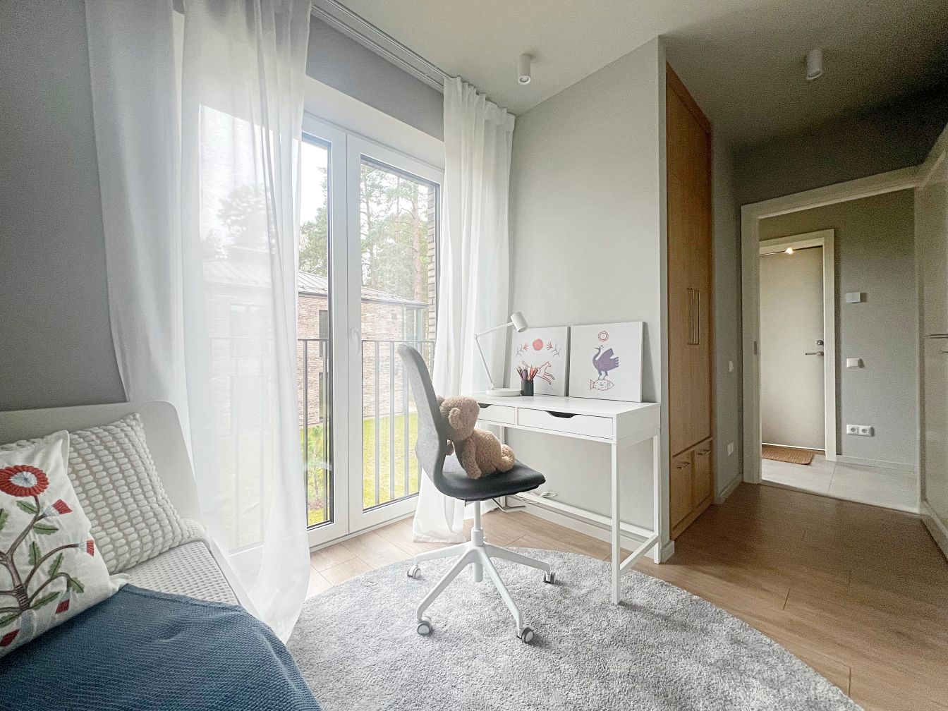 Tiek izīrēts gaišs mūsdienīgs dzīvoklis klusā slēgtā ciematā Dzilnuciems .