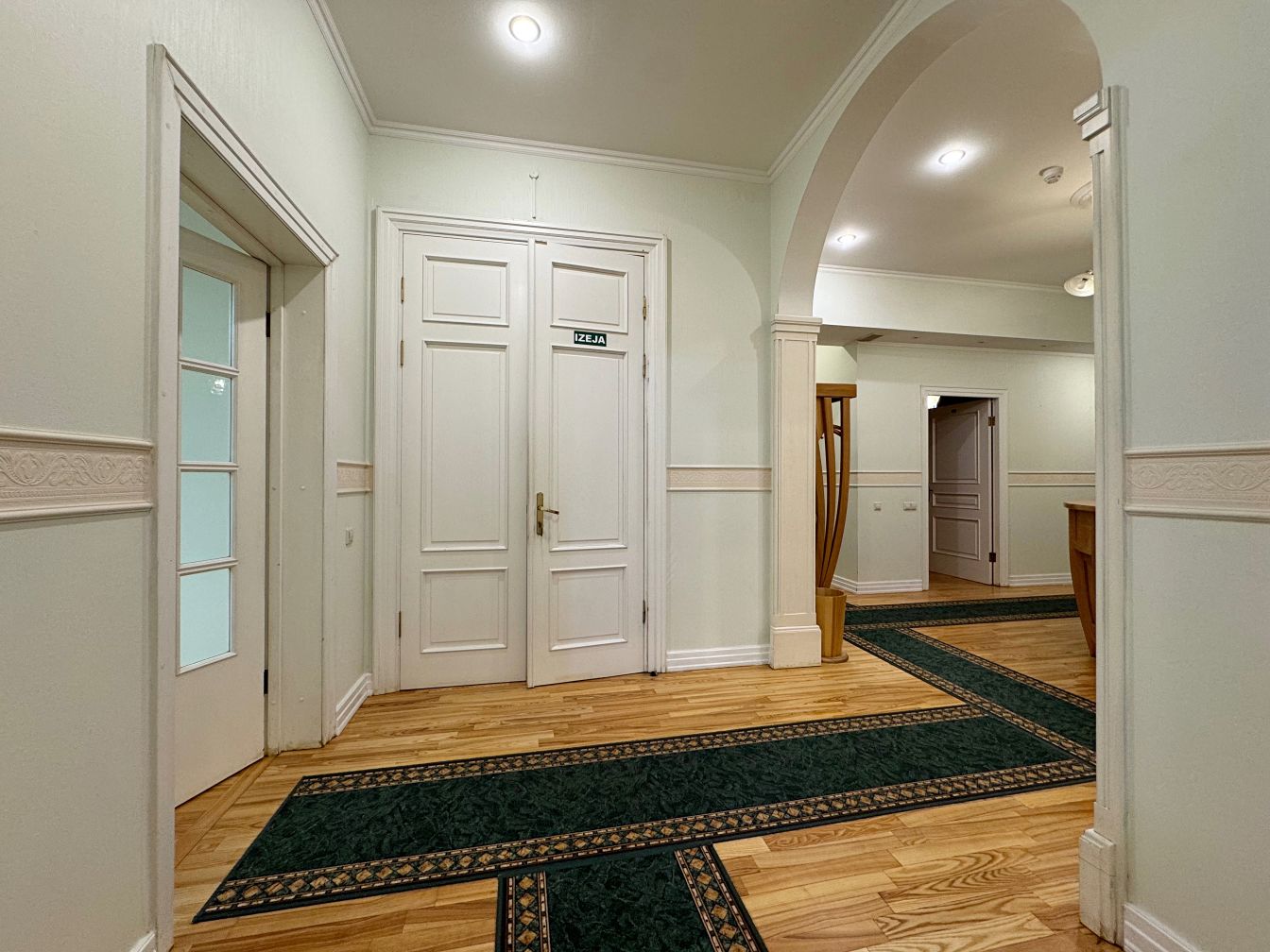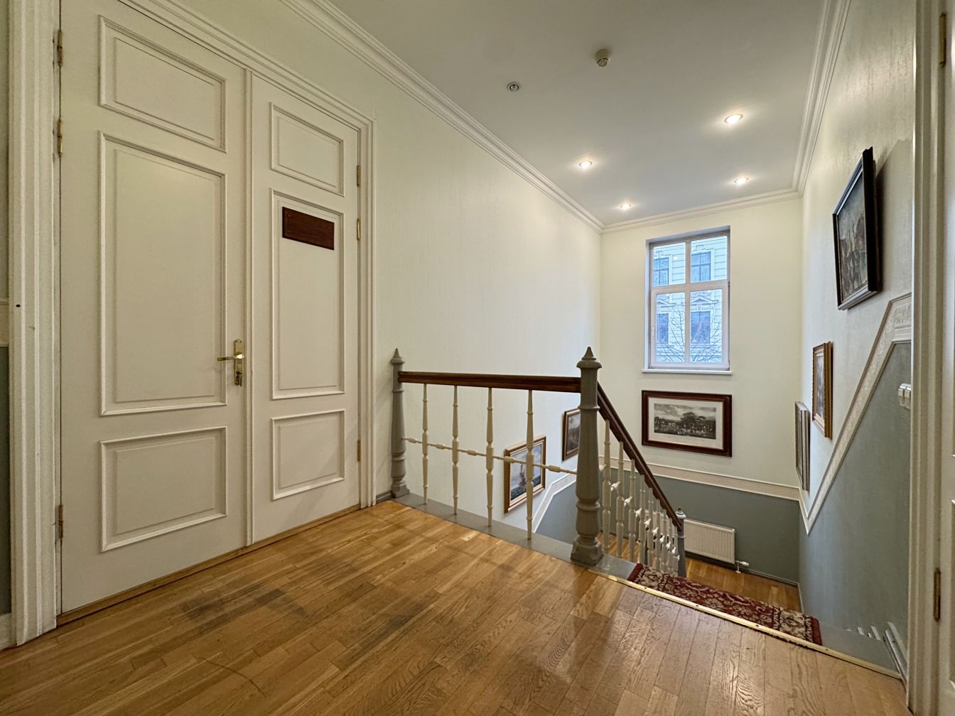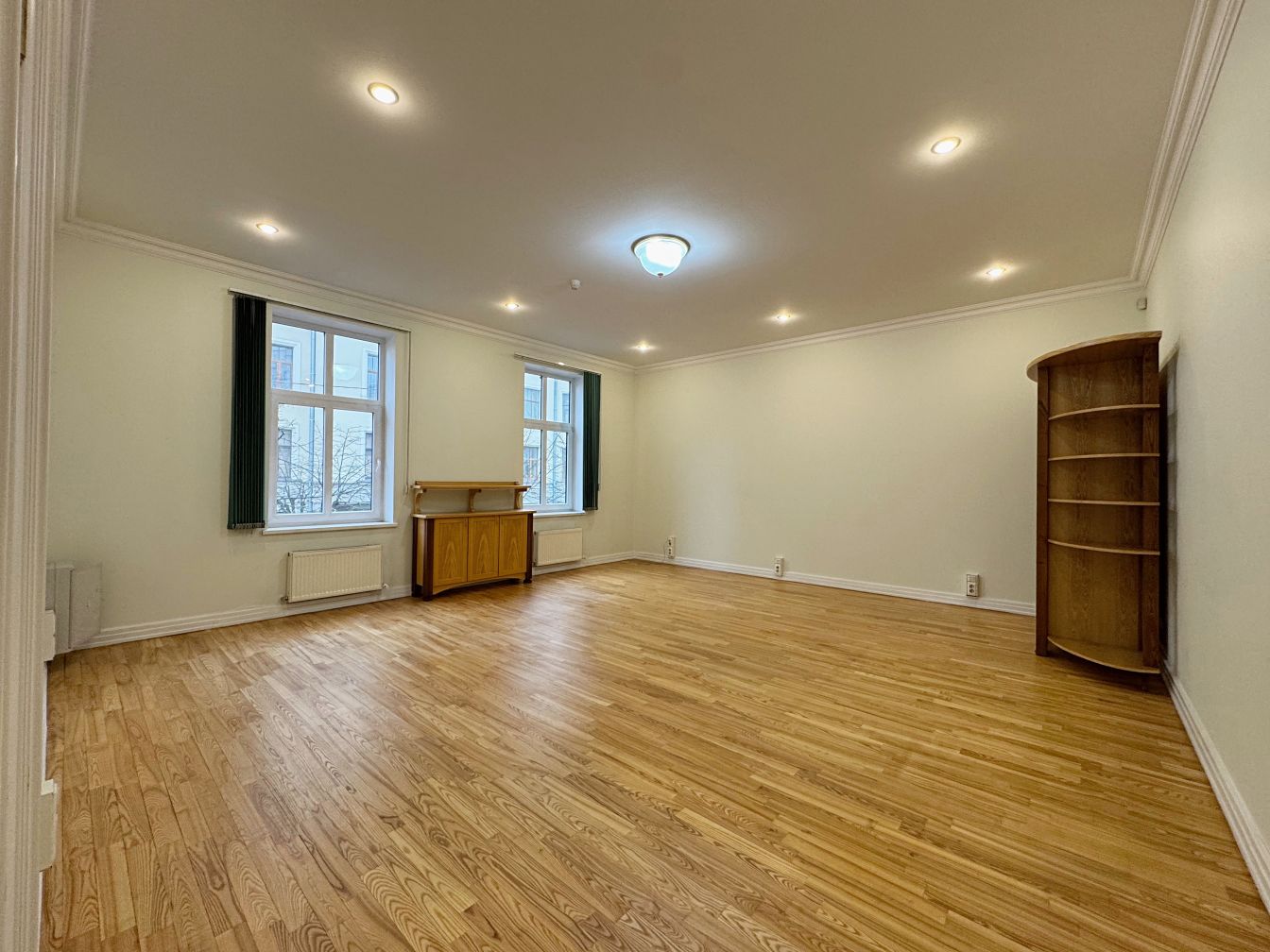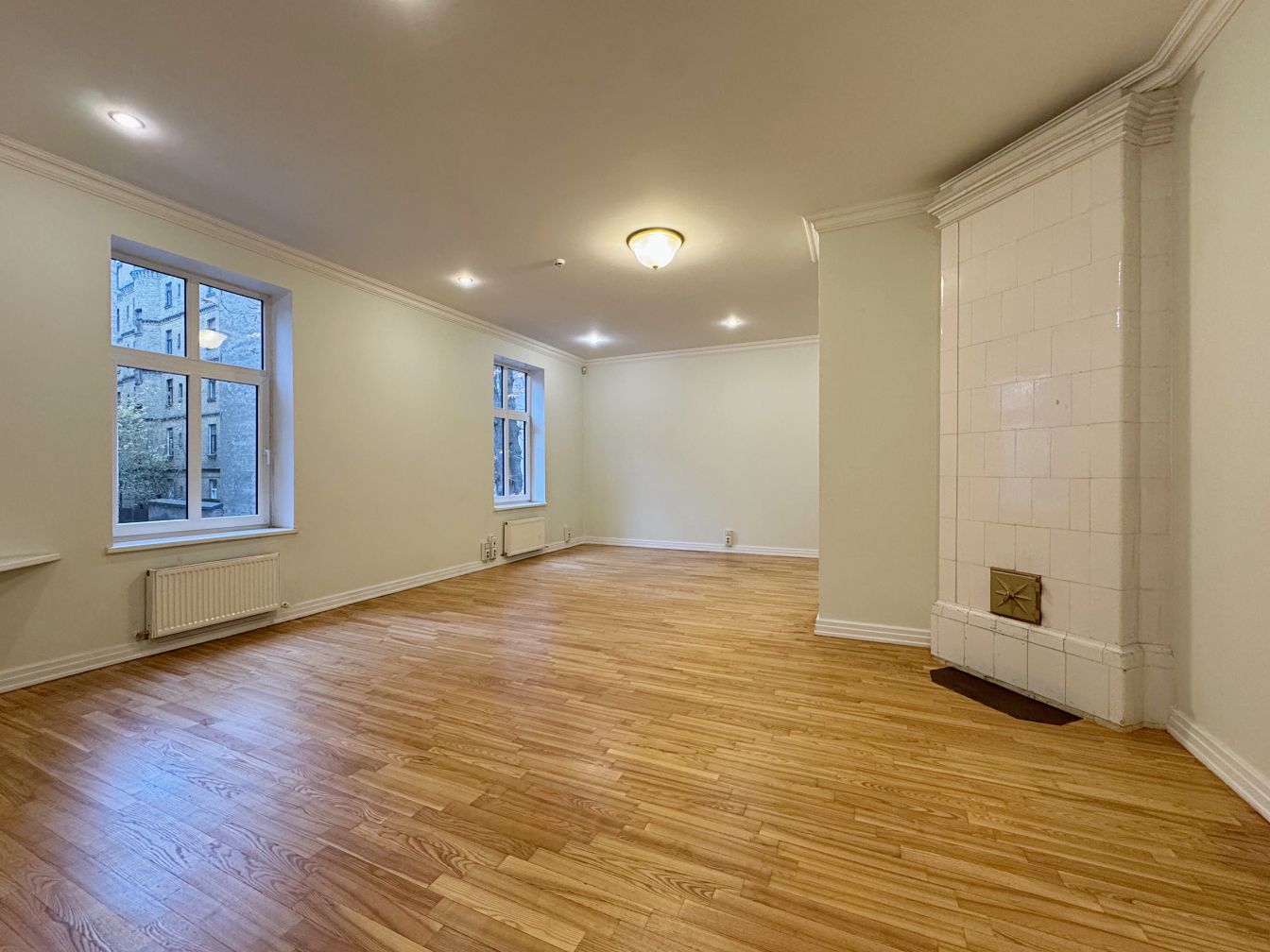 Telpas atrodas renovētas vēsturiskas ēkas 2. stāvā un aizņem visu stāvu, radot privātuma un reprezentācijas sajūtu. Kopējā platība – 288 m², plānojums sastāv no astoņām atsevišķām telpām, daļā no kurām ir saglabāti oriģinālie kamīni un krāsnis, kas piešķir īpašu raksturu un šarmu. Ir arī virtuve un divi sanmezgli.