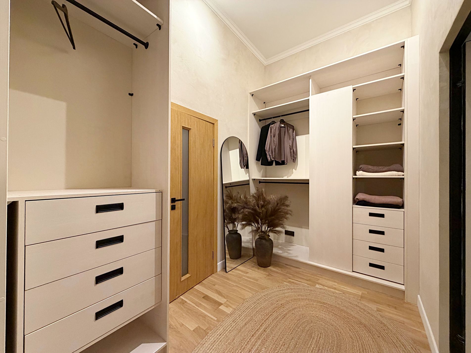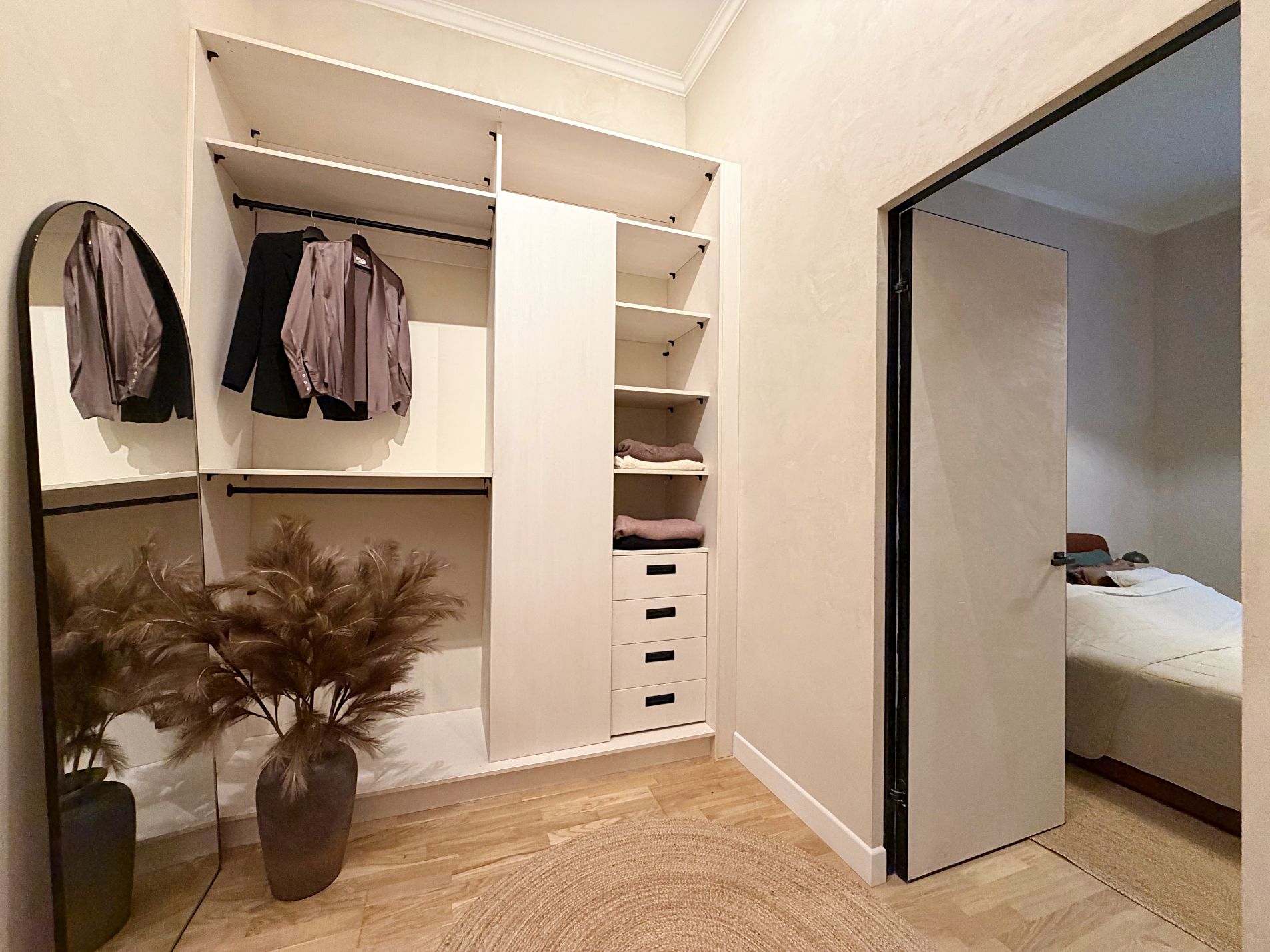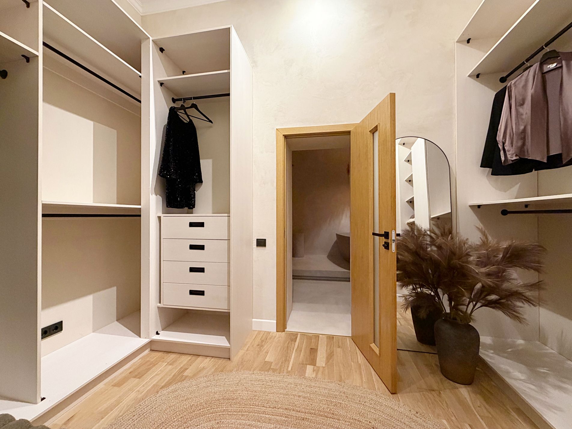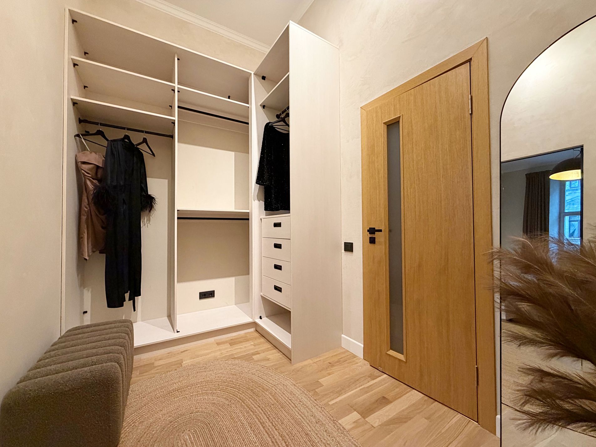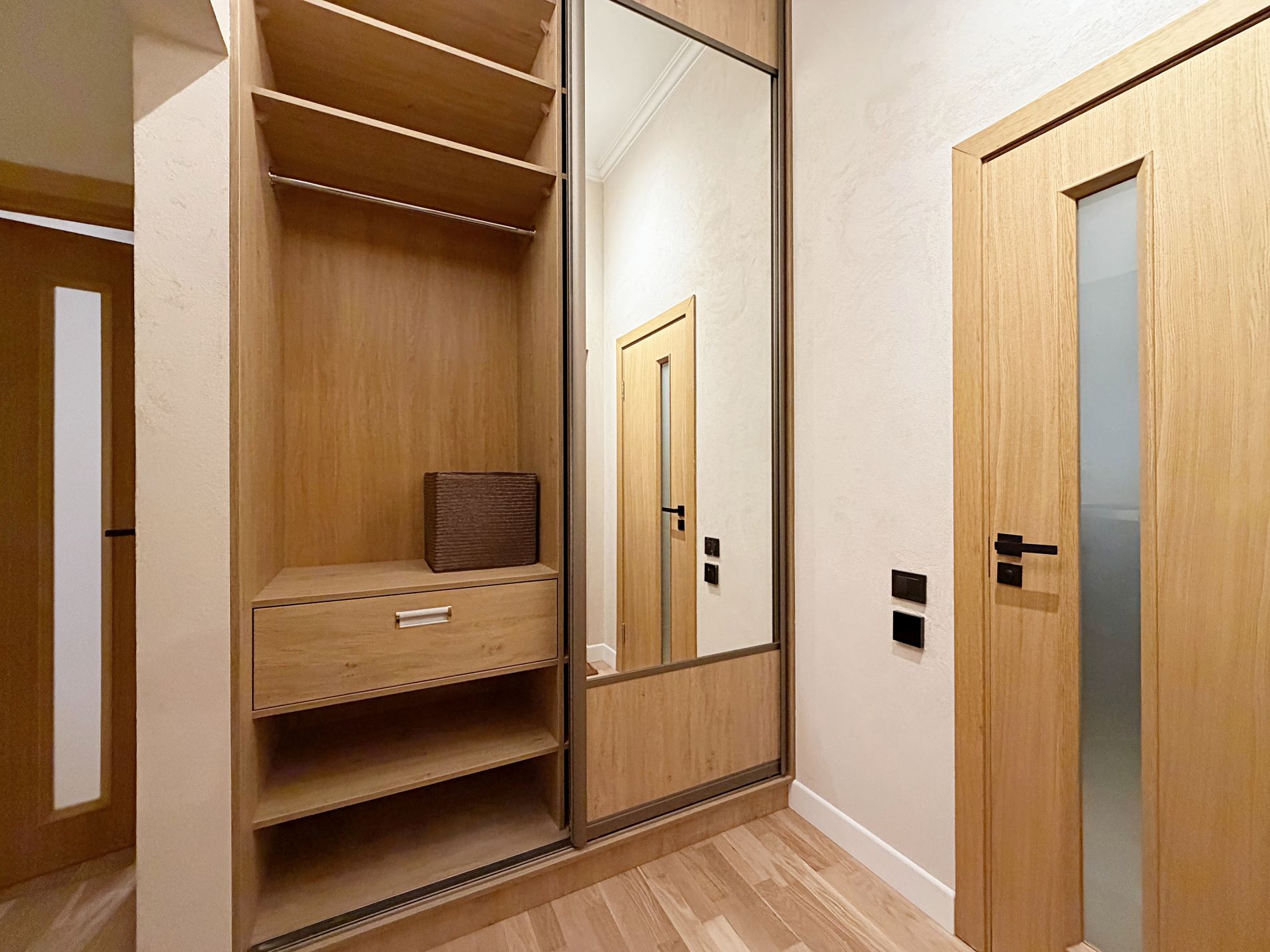 plaša priekštelpa ar iebūvētu drēbju skapi.
