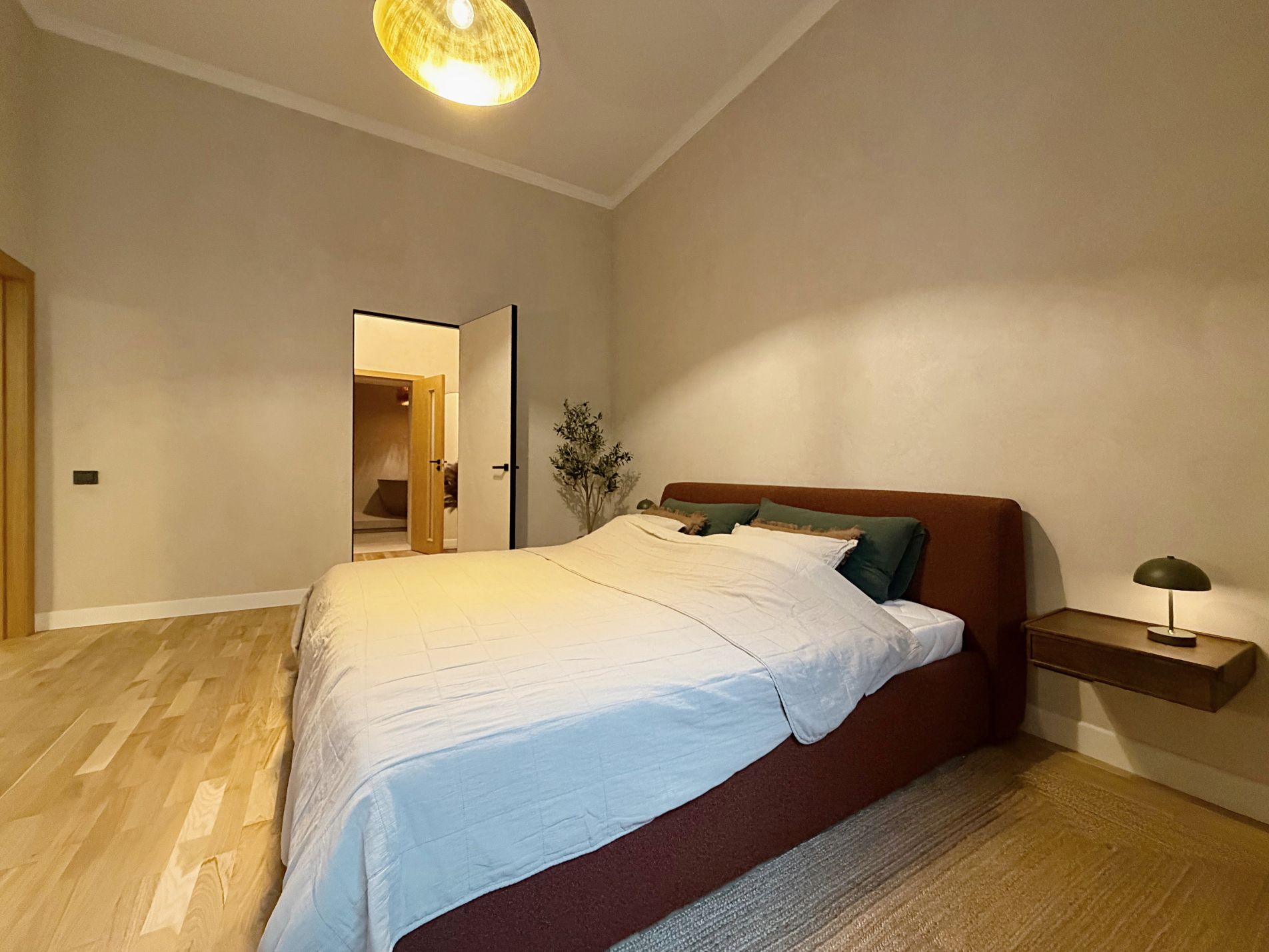 divas plašas guļamistabas, no kurām viena ir master guļamistaba ar atsevišķu garderobes telpu un privātu, plašu vannasistabu ar vannu un dušu,