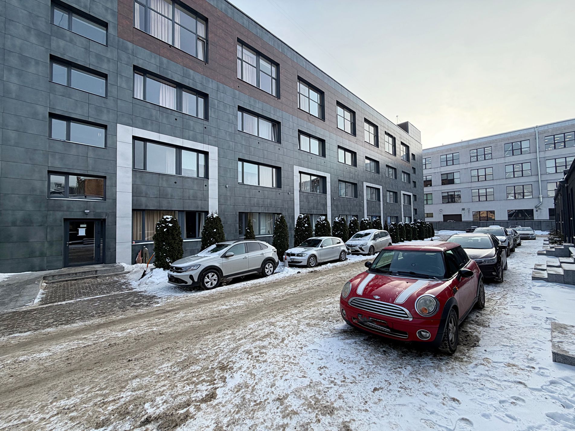 Iespējams iegādāties vai īrēt stāvvietu iekšpagalmā;