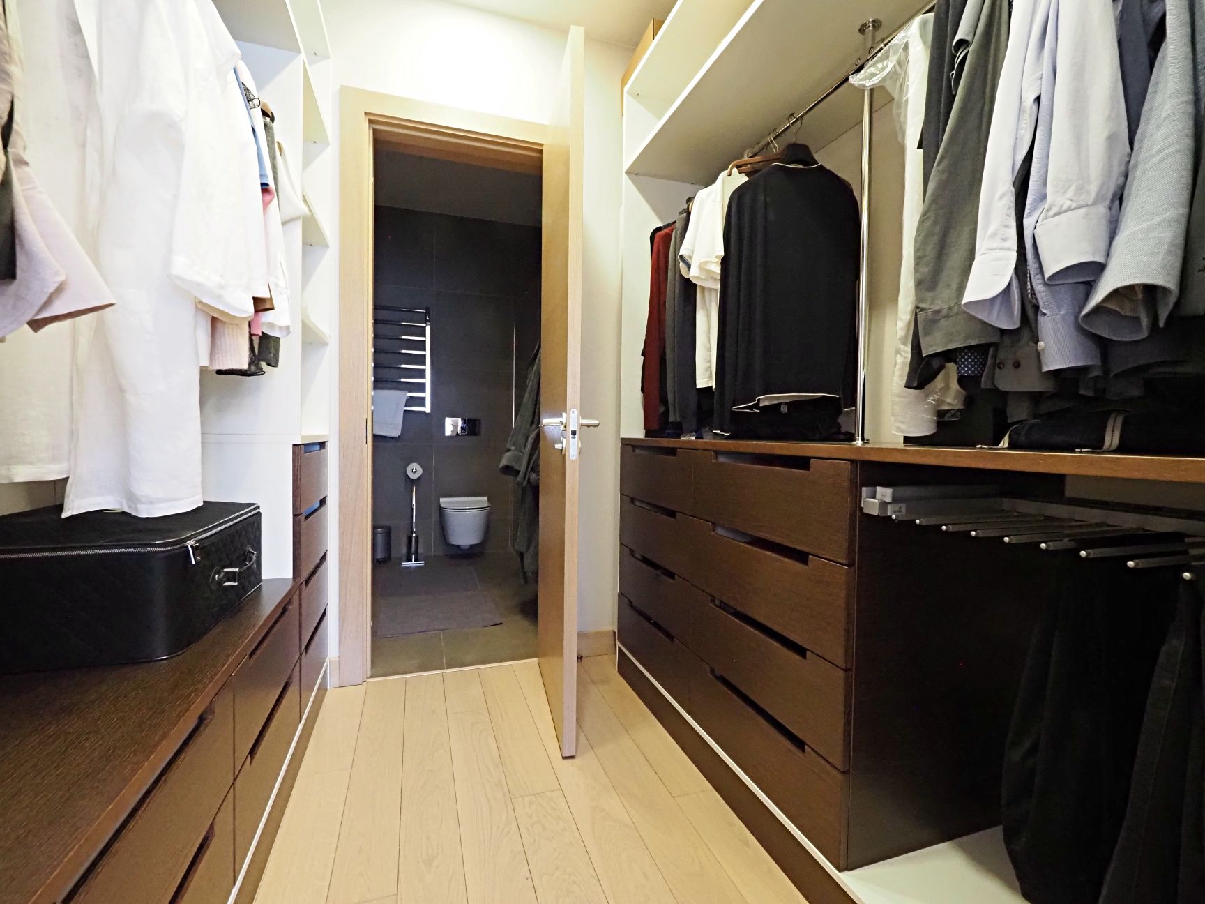 - plaša priekštelpa ar iebūvētiem skapjiem.