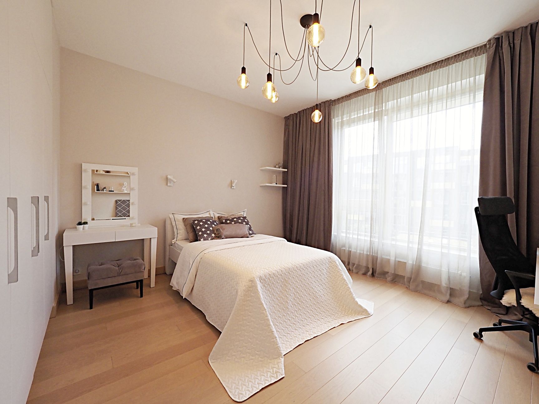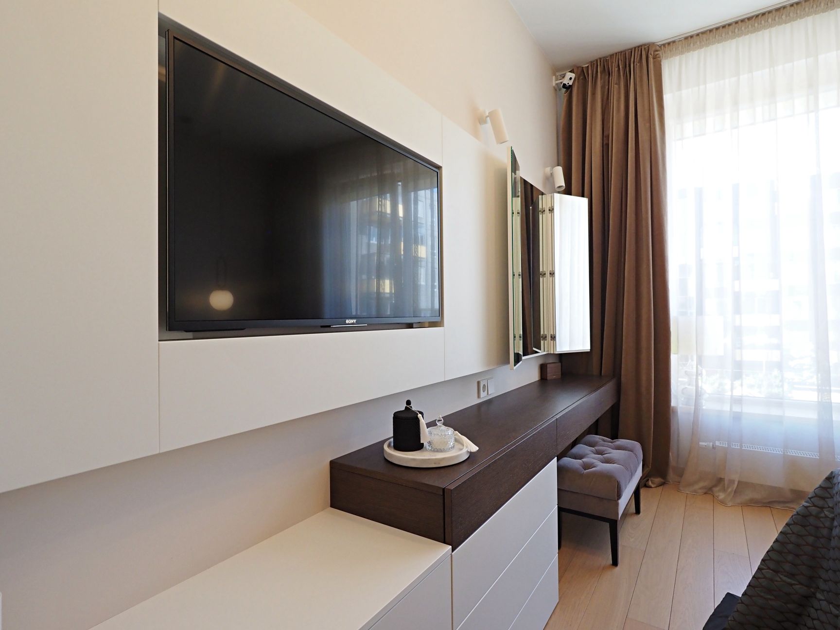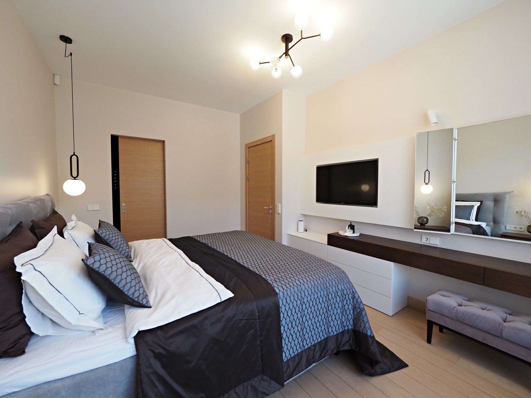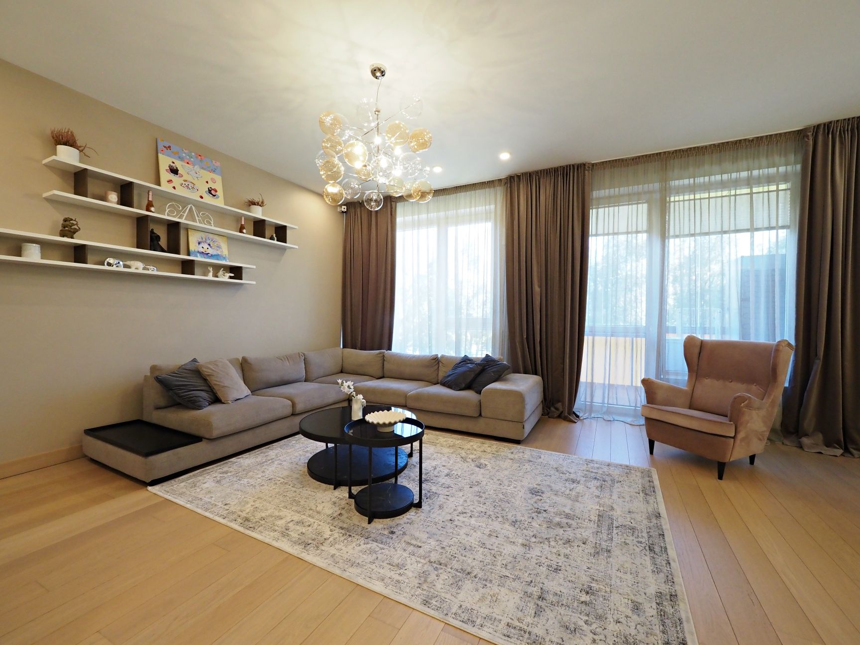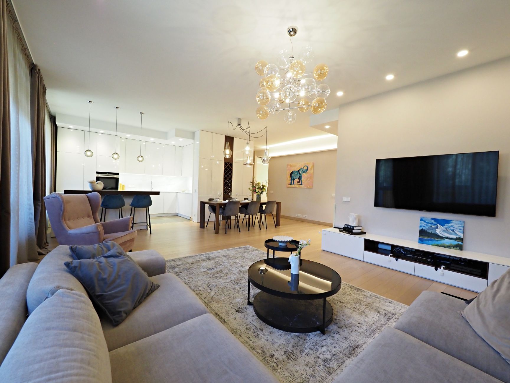 Dzīvoklis pilnībā mēbelēts ar augstas kvalitātes mēbeles, pārdomāts un ērts plānojums ar visām ērtībām.
