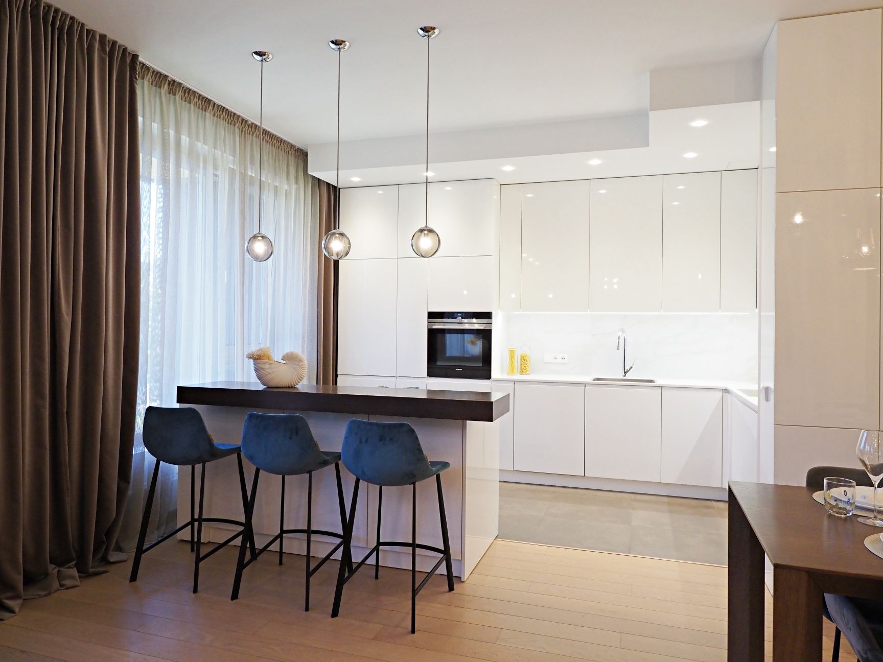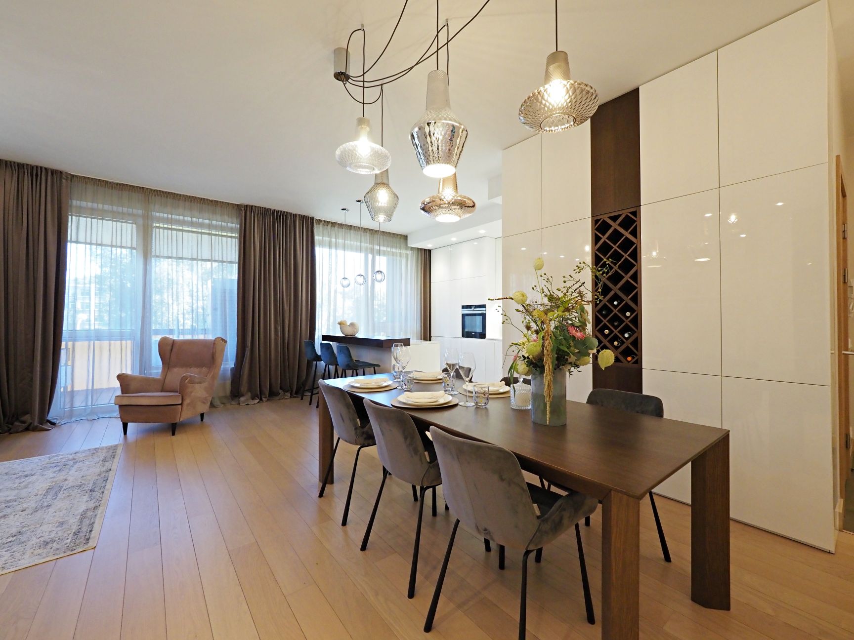 - augstas klases iebūvēta virtuve ar visu nepieciešamo augstas klases sadzīves tehniku Siemens;