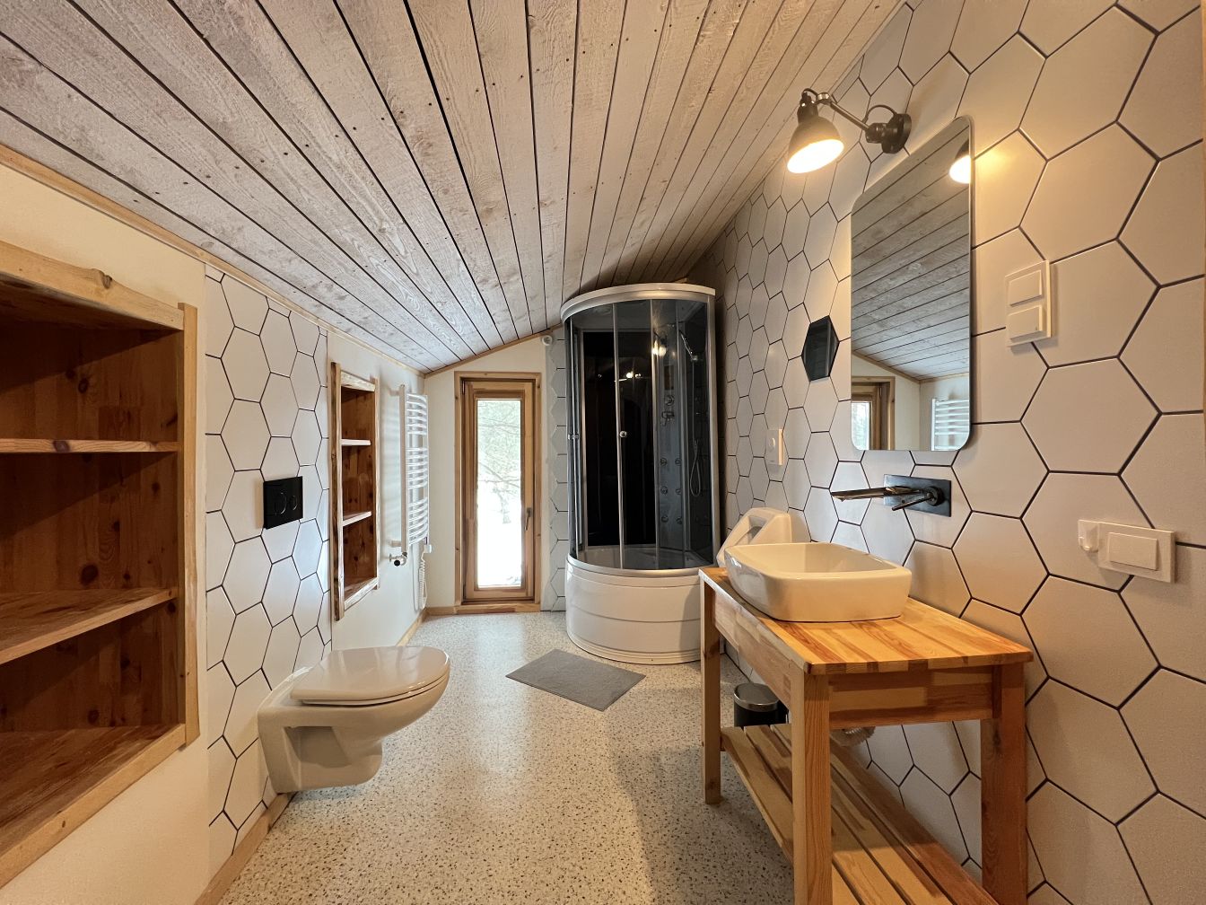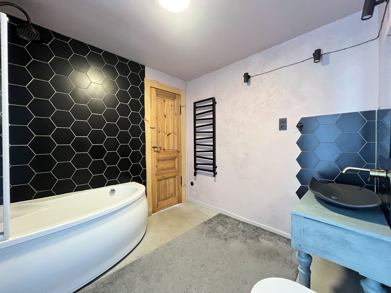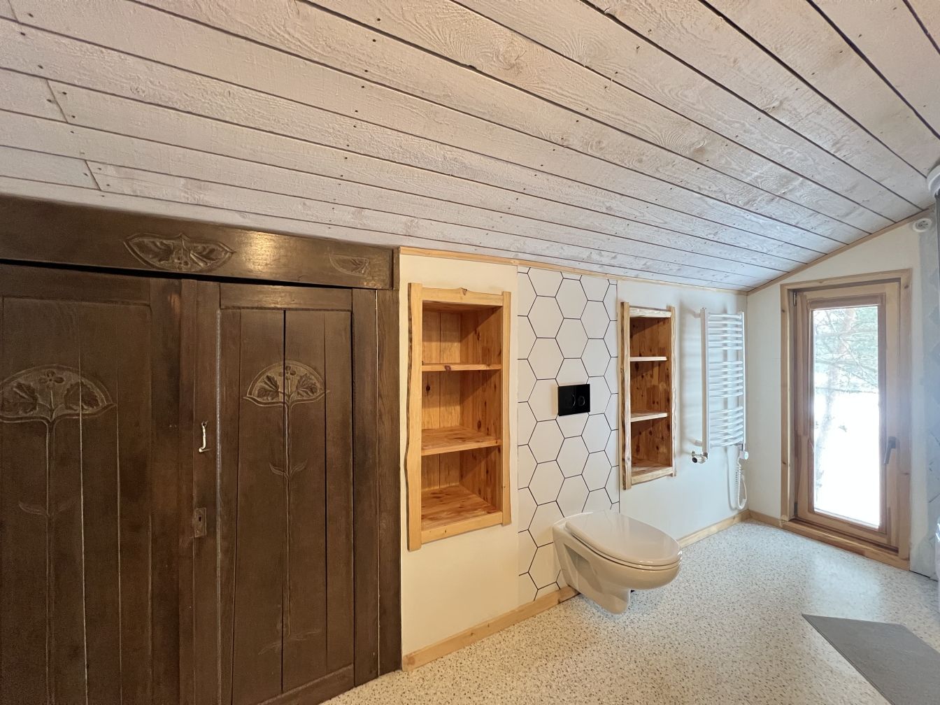 Komunikācijas: pilsētas ūdens un kanalizācija, apkure ar granulu katlu ar automātisku regulēšanu. 1. stāvā ir siltās grīdas, 2. stāvā lieli čuguna radiatori.