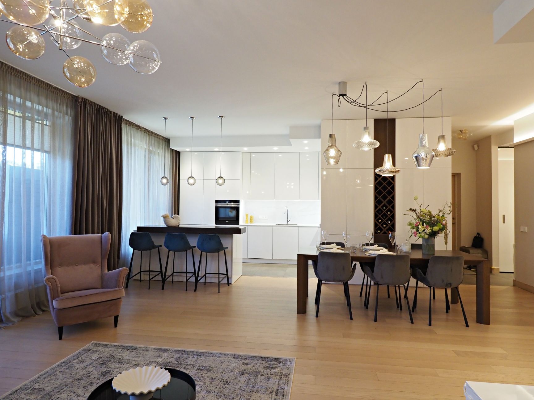 - augstas klases iebūvēta virtuve ar visu nepieciešamo augstas klases sadzīves tehniku Siemens;