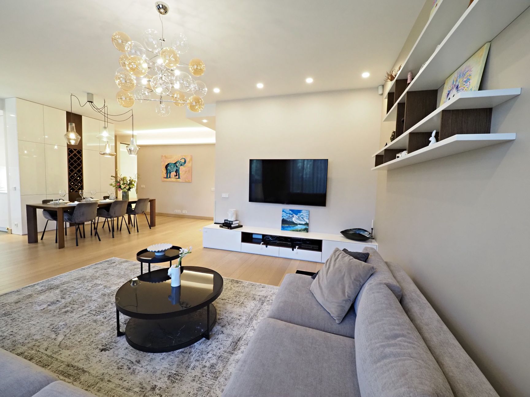 Dzīvoklis pilnībā mēbelēts ar augstas kvalitātes mēbeles, pārdomāts un ērts plānojums ar visām ērtībām.