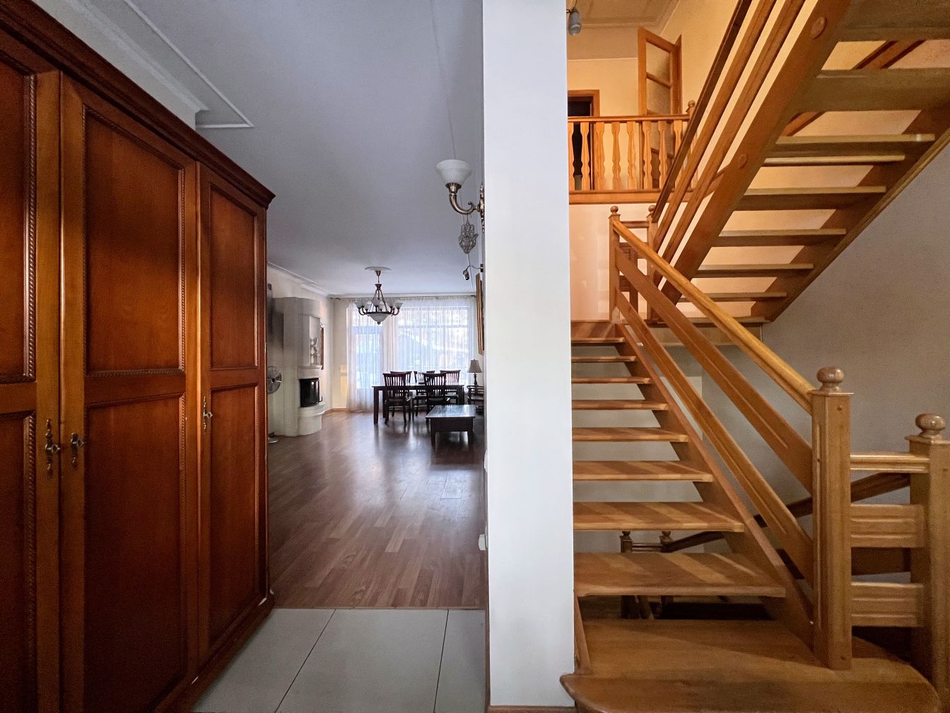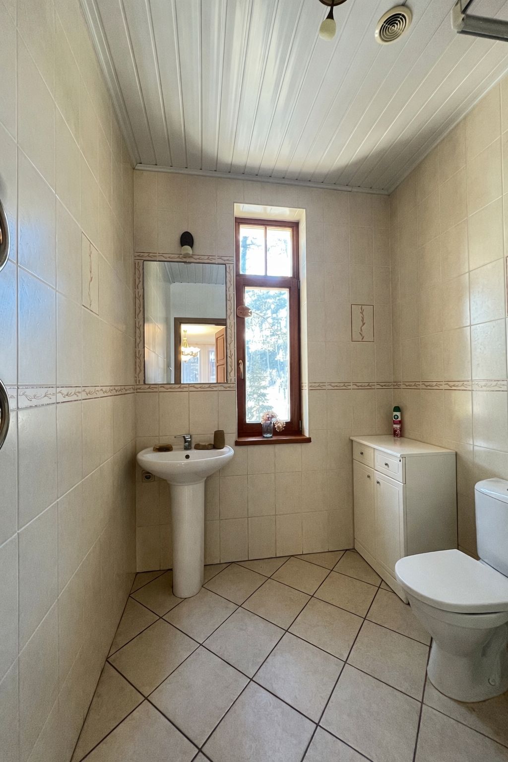 Mājas pirmajā stāvā ir plaša un ērta virtuve, vieistaba ar kamīnu, kabinets, apvienots sanmezgls ar dušu, priekšnams un terase. Otrajā stāvā ir 3 guļamistabas, garderobes telpa, tualete un vannasistaba ar vannu. Mājas pagrabstāvā ir veļas telpa, pirtiņa, atpūtas telpa, noliktavas telpa un tehniskā telpa. Apkure mājai tiek nodrošināta ar granulu katlu.