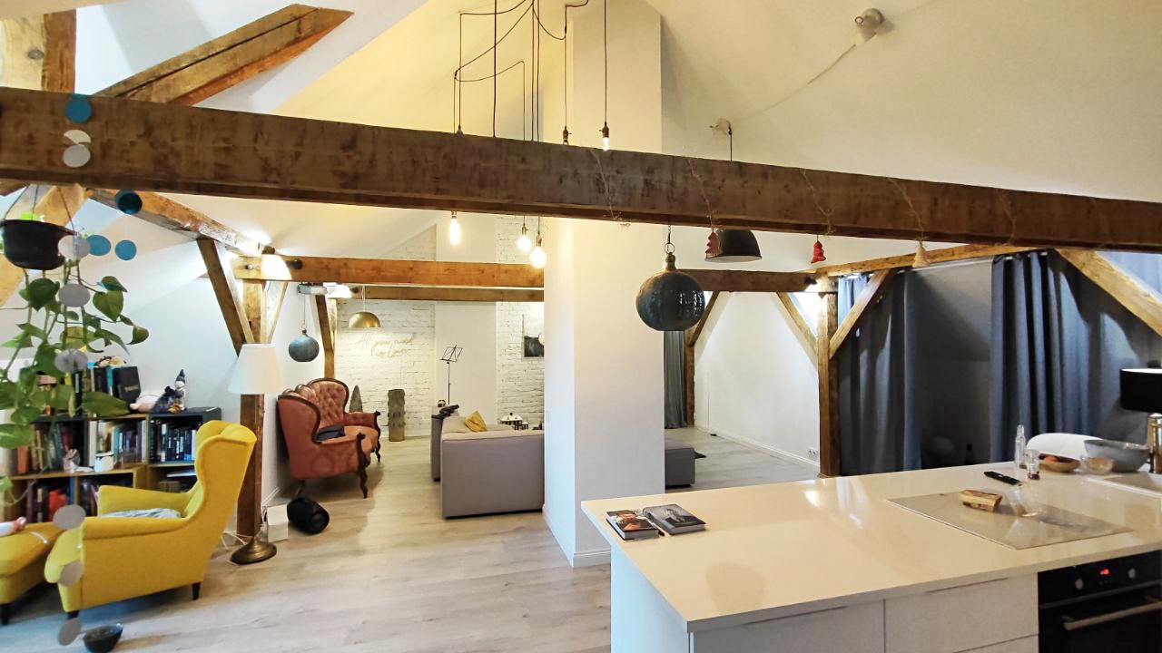 Izīrēju modernu un plašu mansarda dzīvokli Centrā.