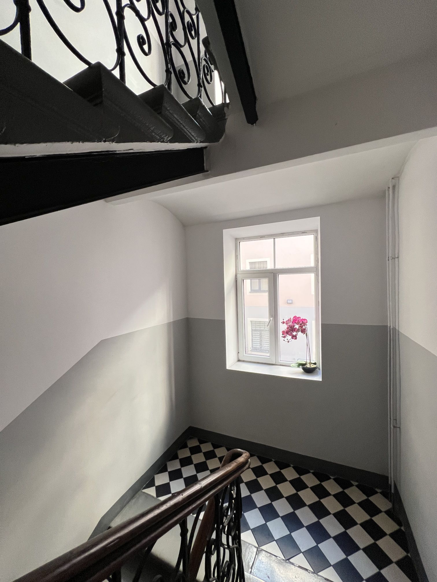 * Tīra, sakopta un smartžīga kāpņutelpa Ļoti laba atrašanās vieta. Pastaigas attālumā pieejams viss - sabiedriskais transports. mācību iestādes, veikals , kafejnīcas un Vecrīga. iedriskais transports. mācību iestādes, veikals , kafejnīcas un Vecrīga.