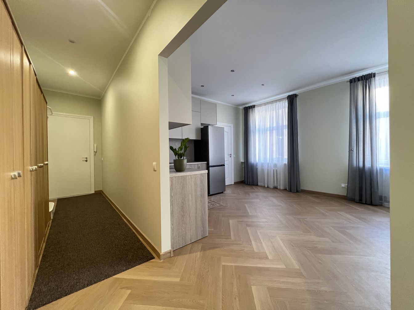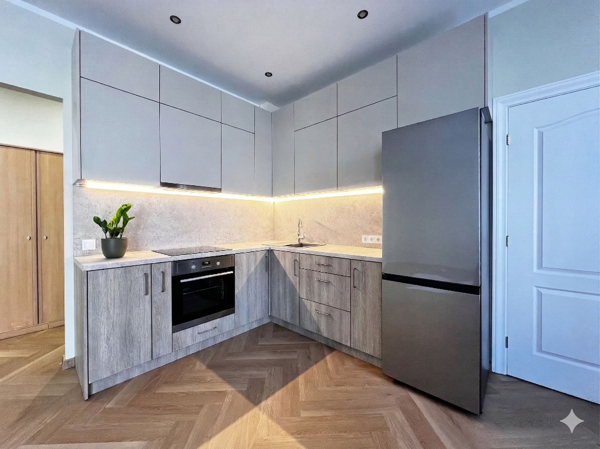 Dzīvoklis ir tikko svaigi remontēts - jaunas grīdas, jauna virtuve un sadzīves tehnika, vannasistaba un santehnilka.