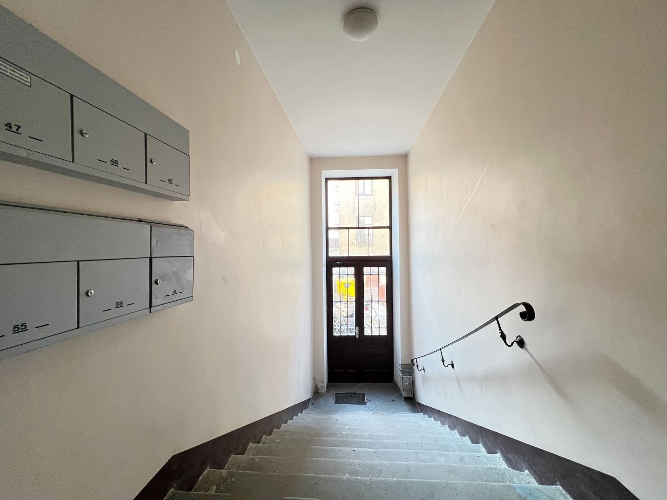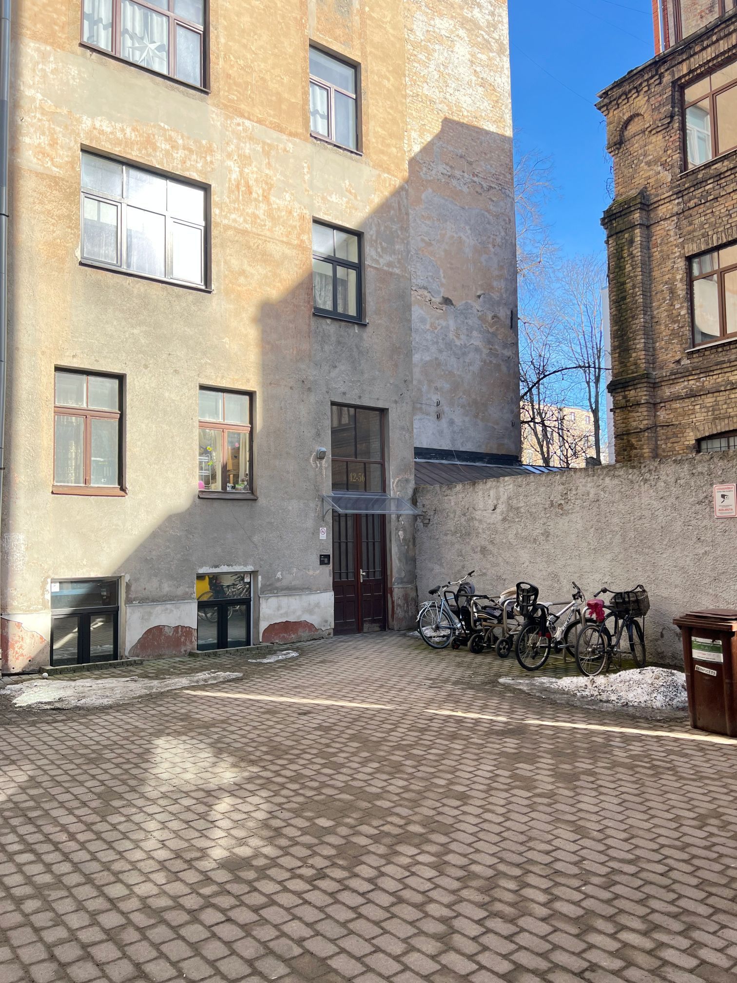 Dzīvoklis atrodas iekšpagalma mājas 4. stāvā. Logi vērsti uz abām pusēm. Sakopta kāpņutelpa, lēzenas trepes, viegli kāpt uz 4. stāvu. Laba un ēerta atrašanās vieta. Pastaigas attālumā pieejams sabiedriskais transports un viss nepieciešamais ērtai dzīvošanai centrā.