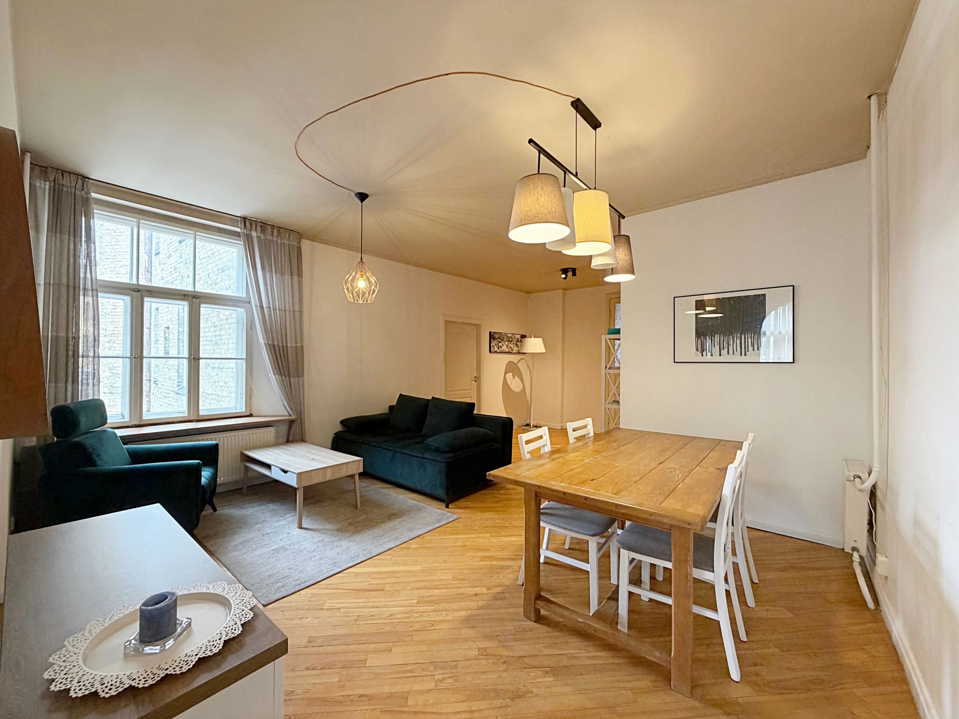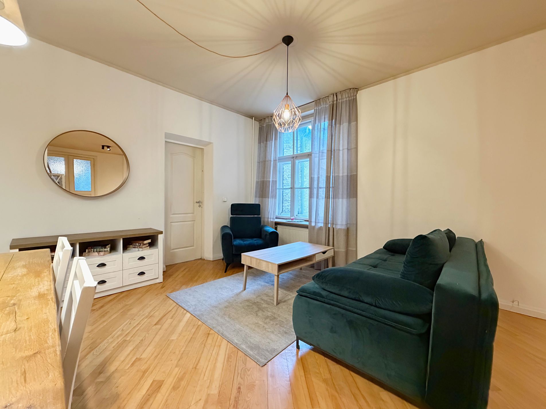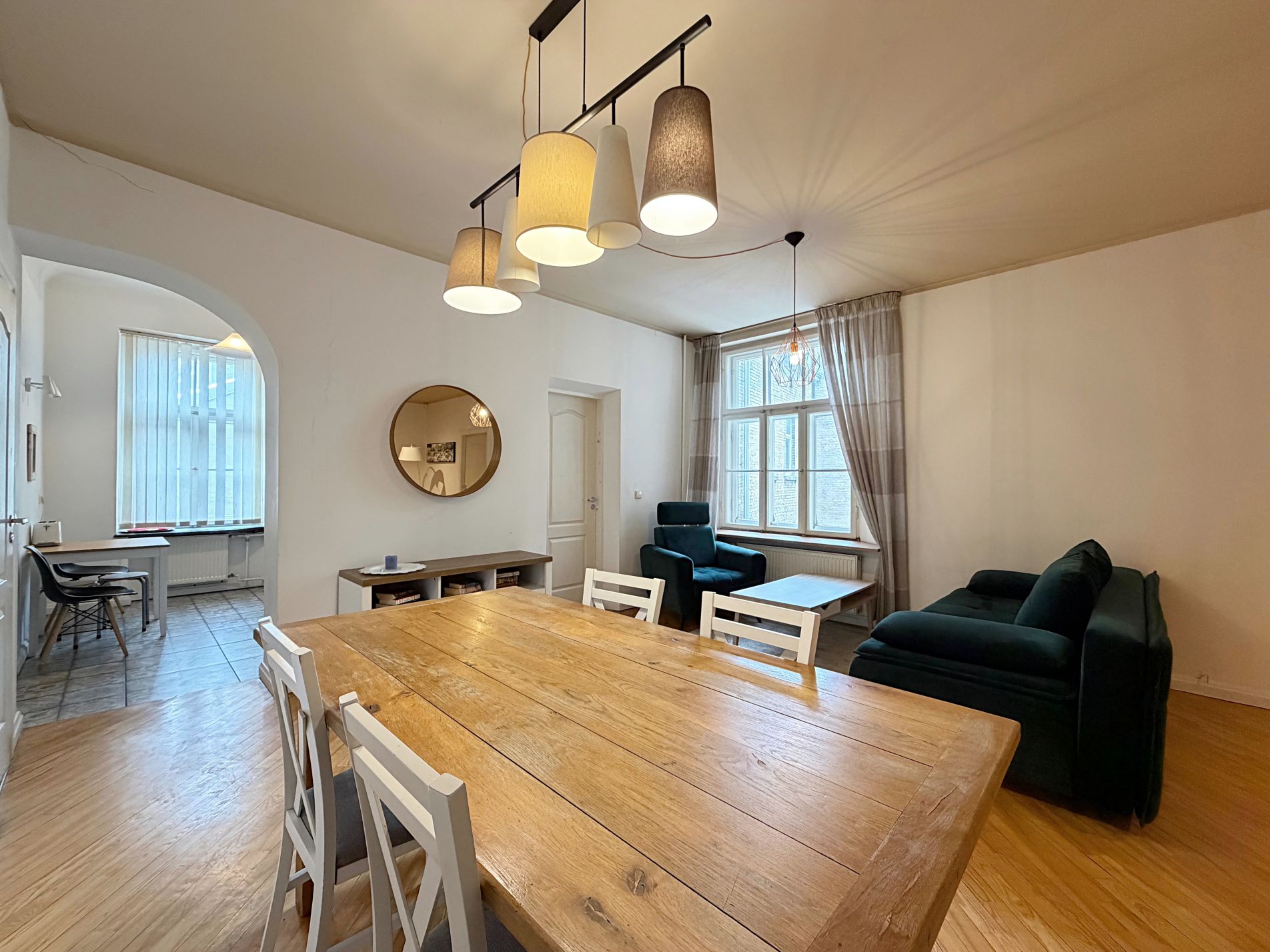 Dzīvoklis pilnībā mēbelēts, iekārtots un gatavs dzīvošanai.