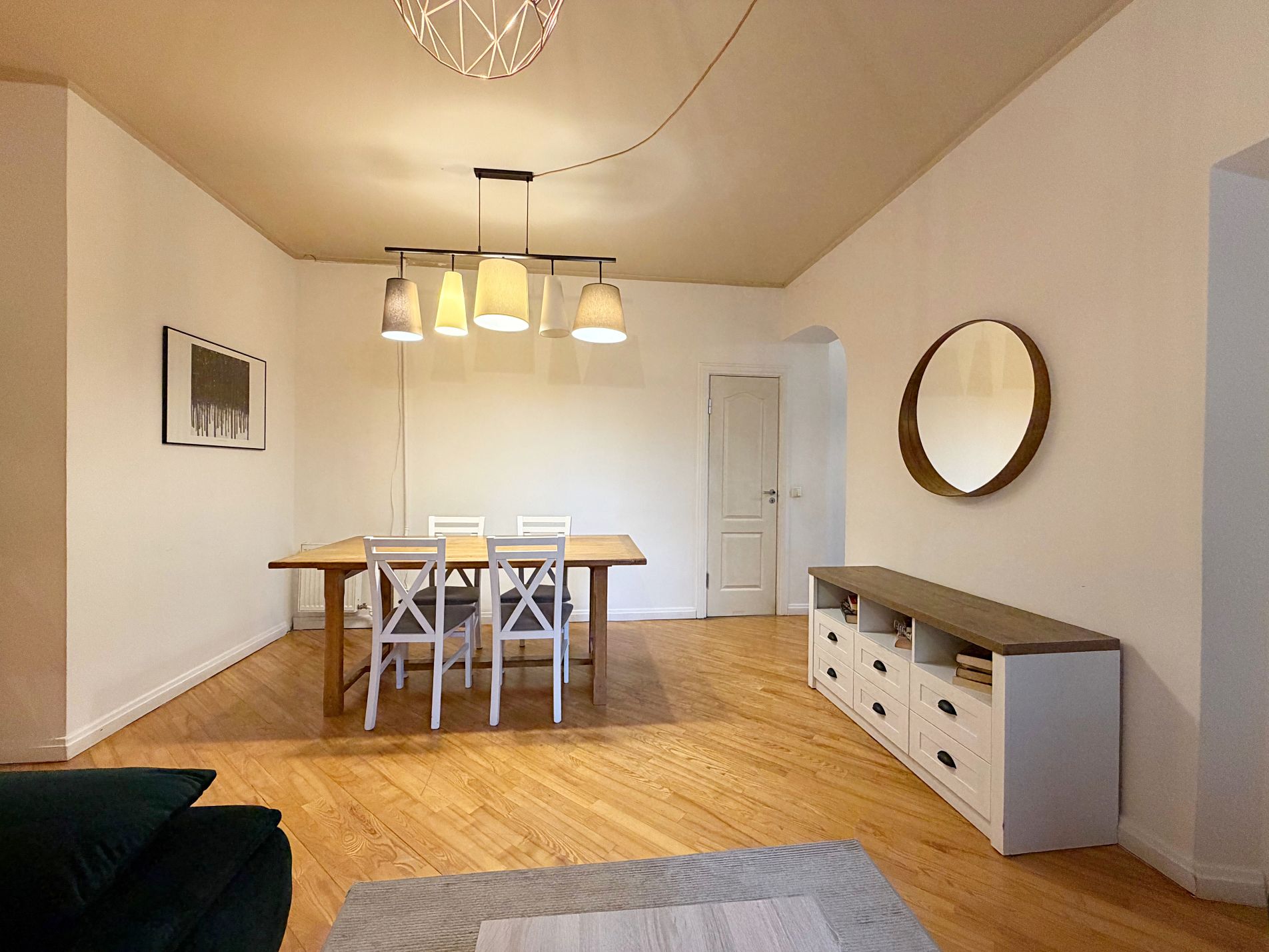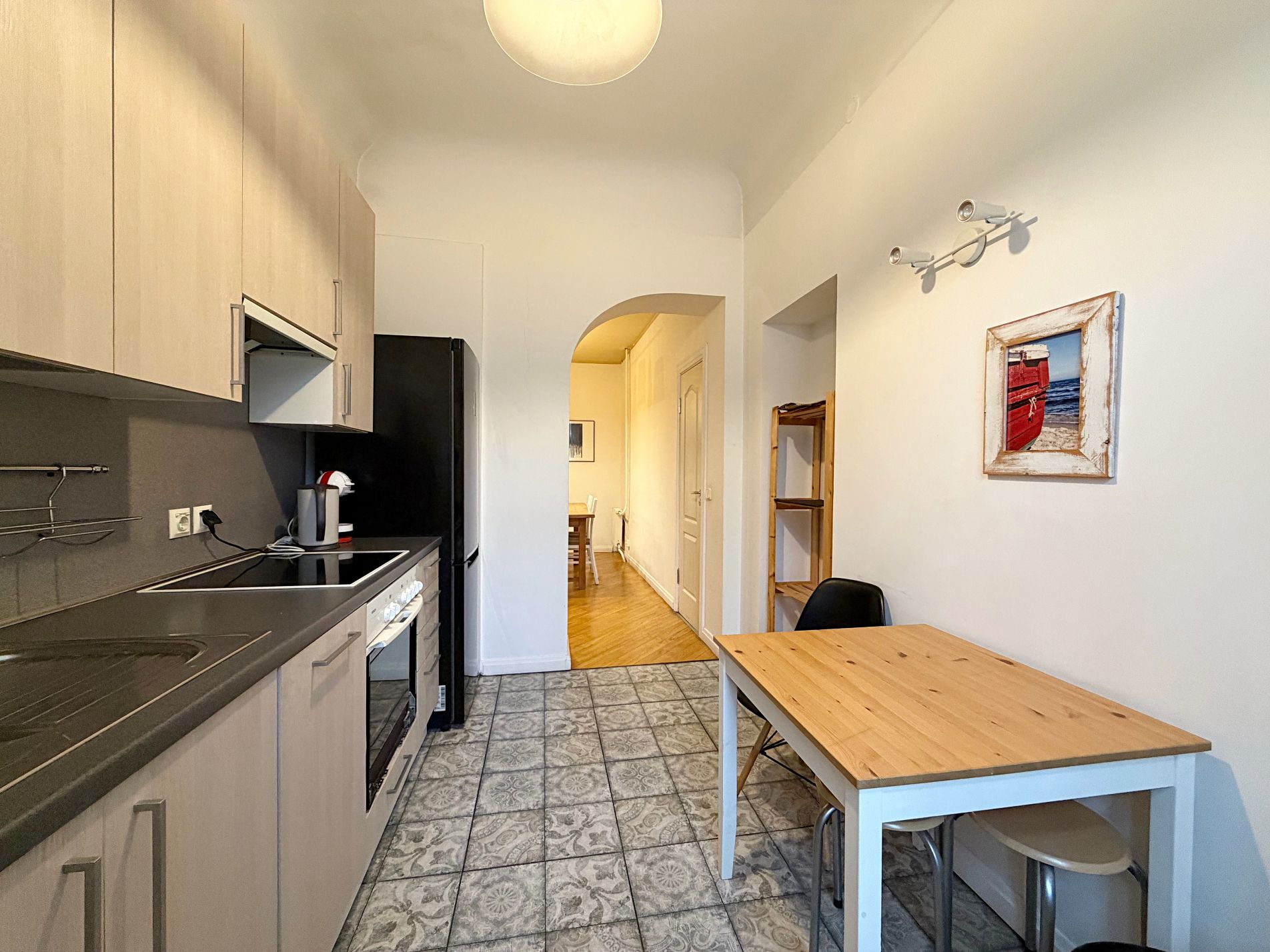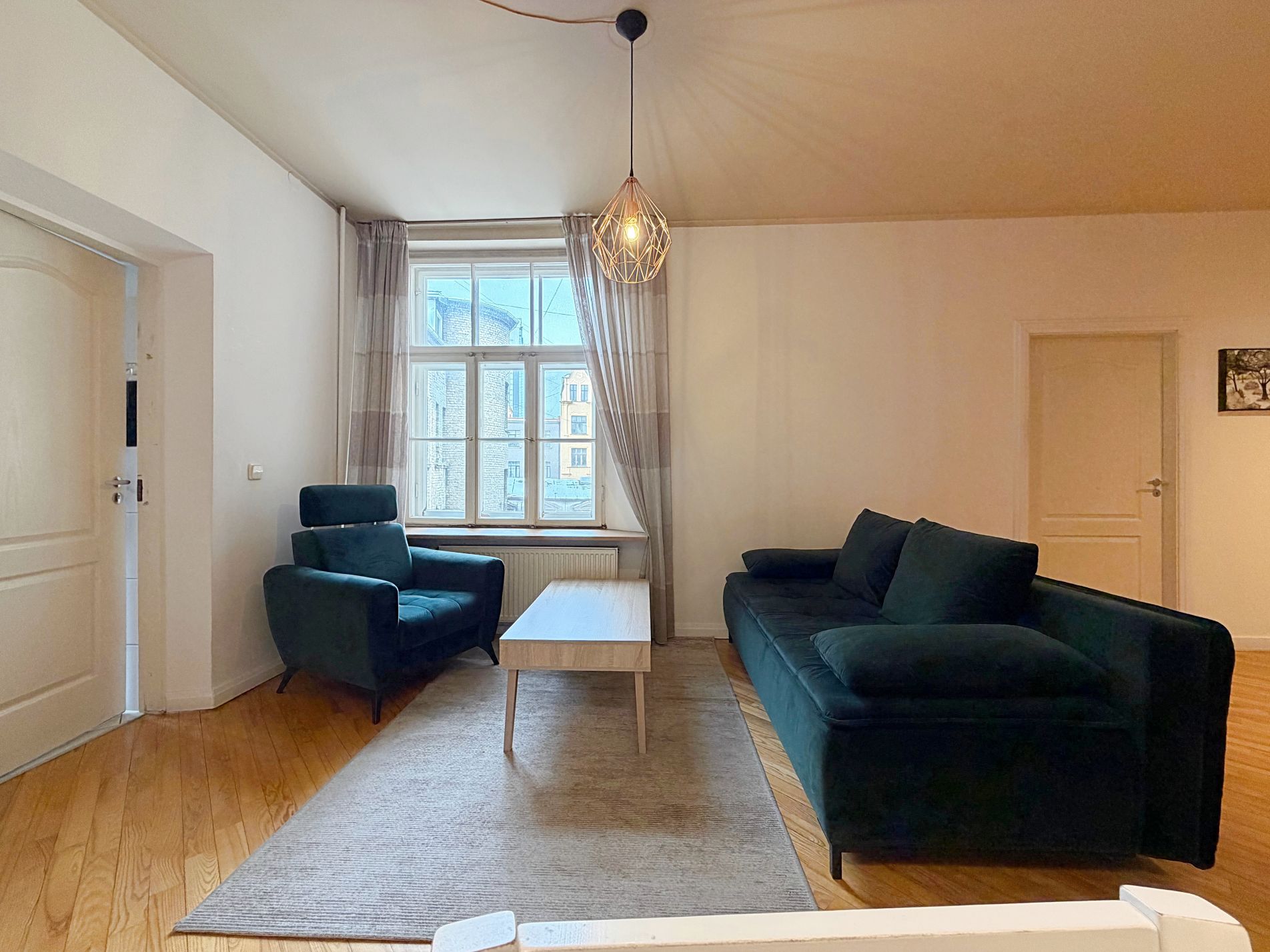 Dzīvoklis pilnībā mēbelēts, iekārtots un gatavs dzīvošanai.
