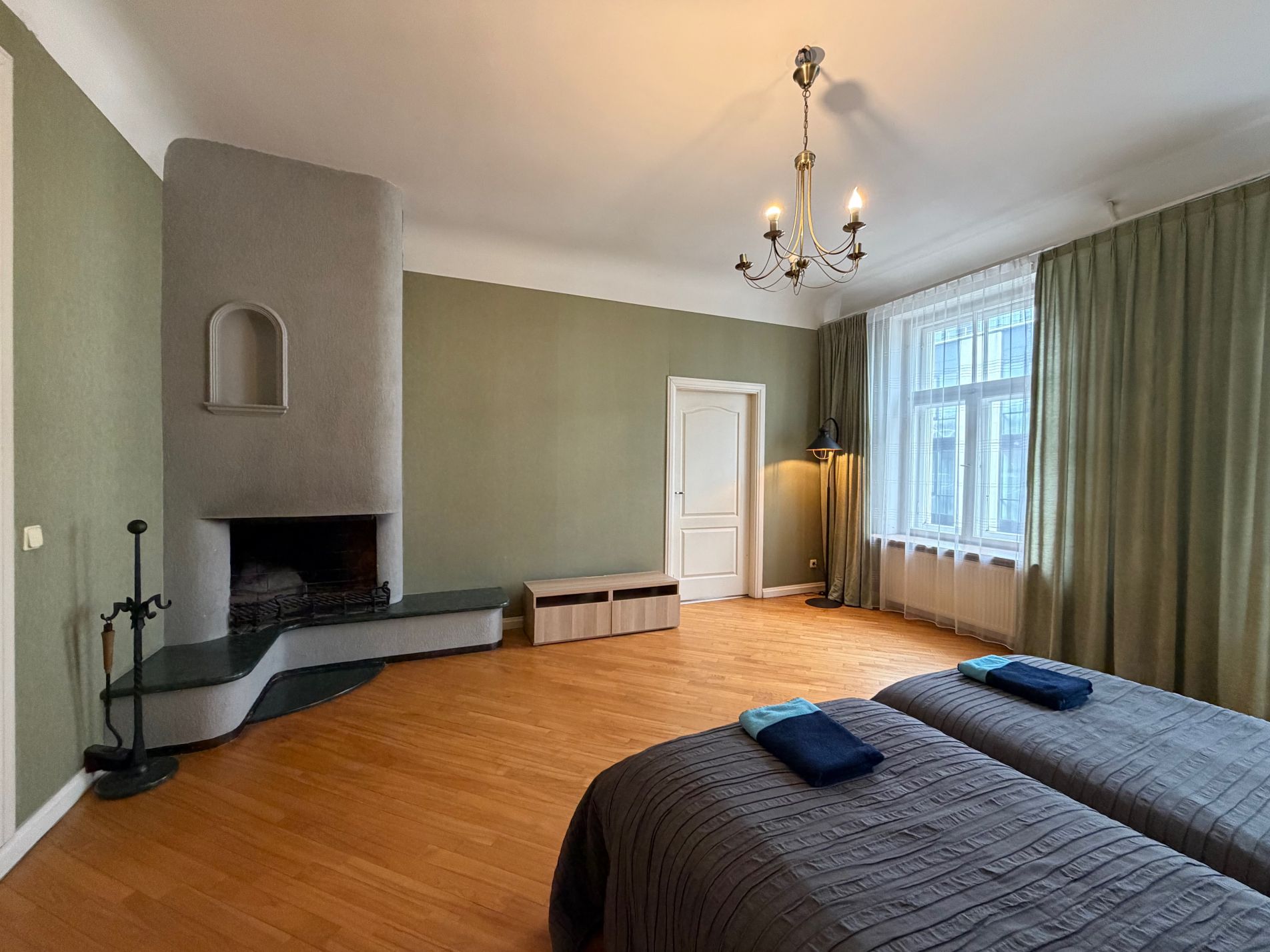 - plaša viesistaba ar funkcionālu kamīnu;