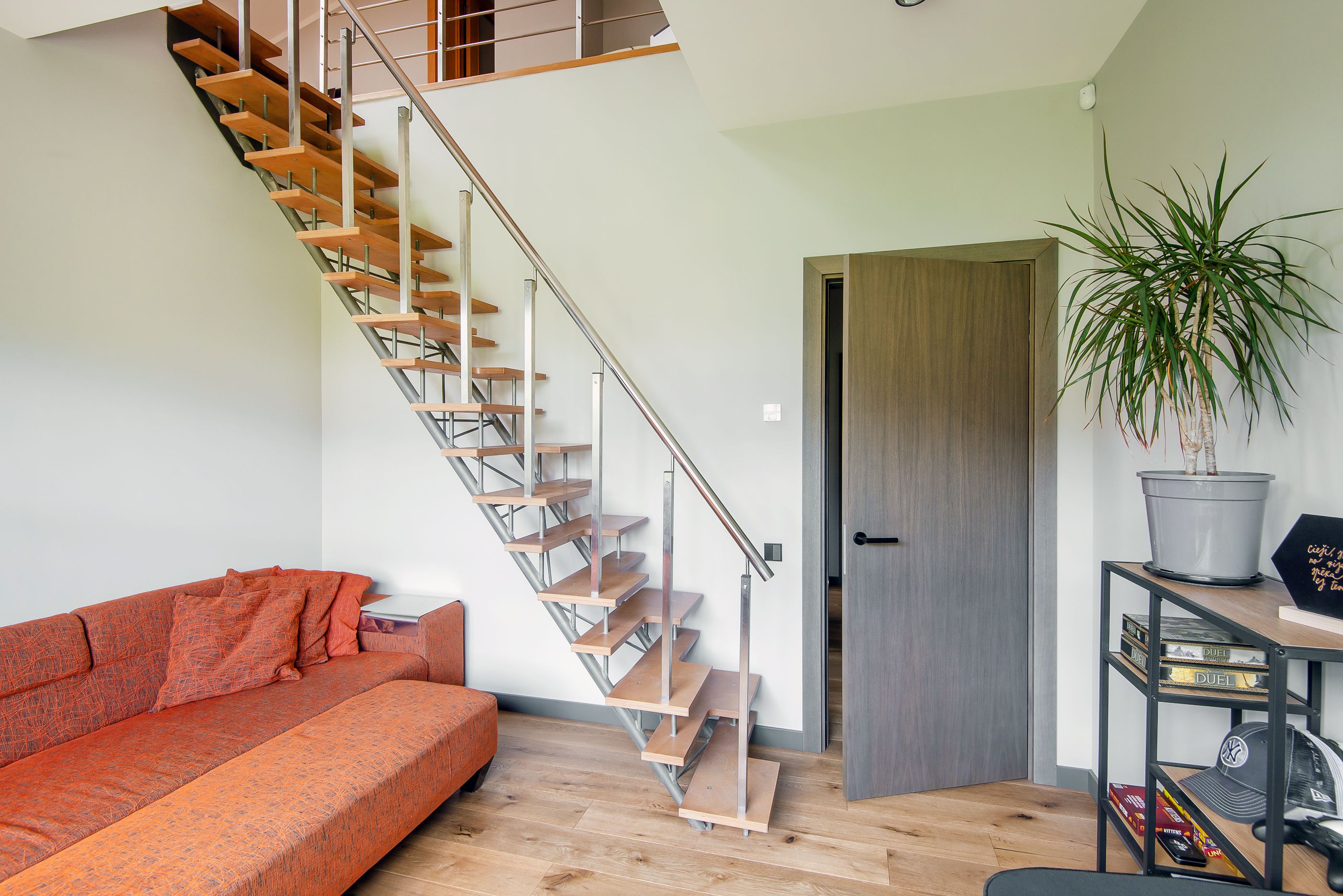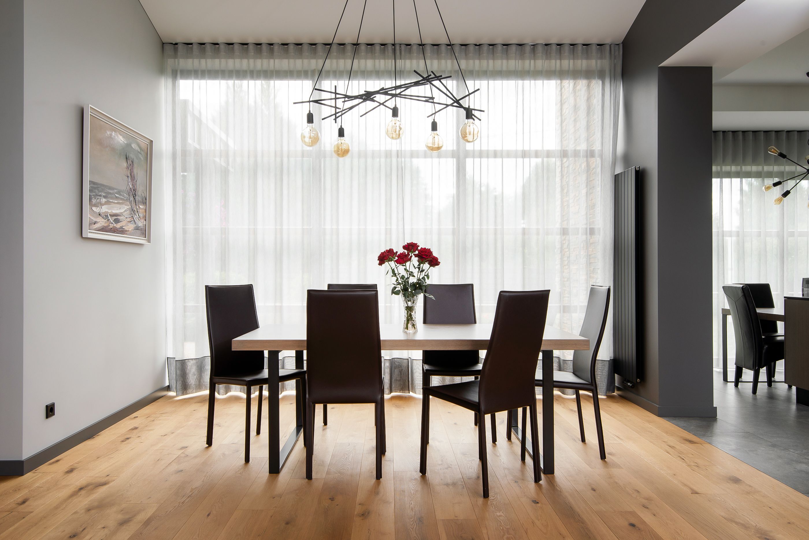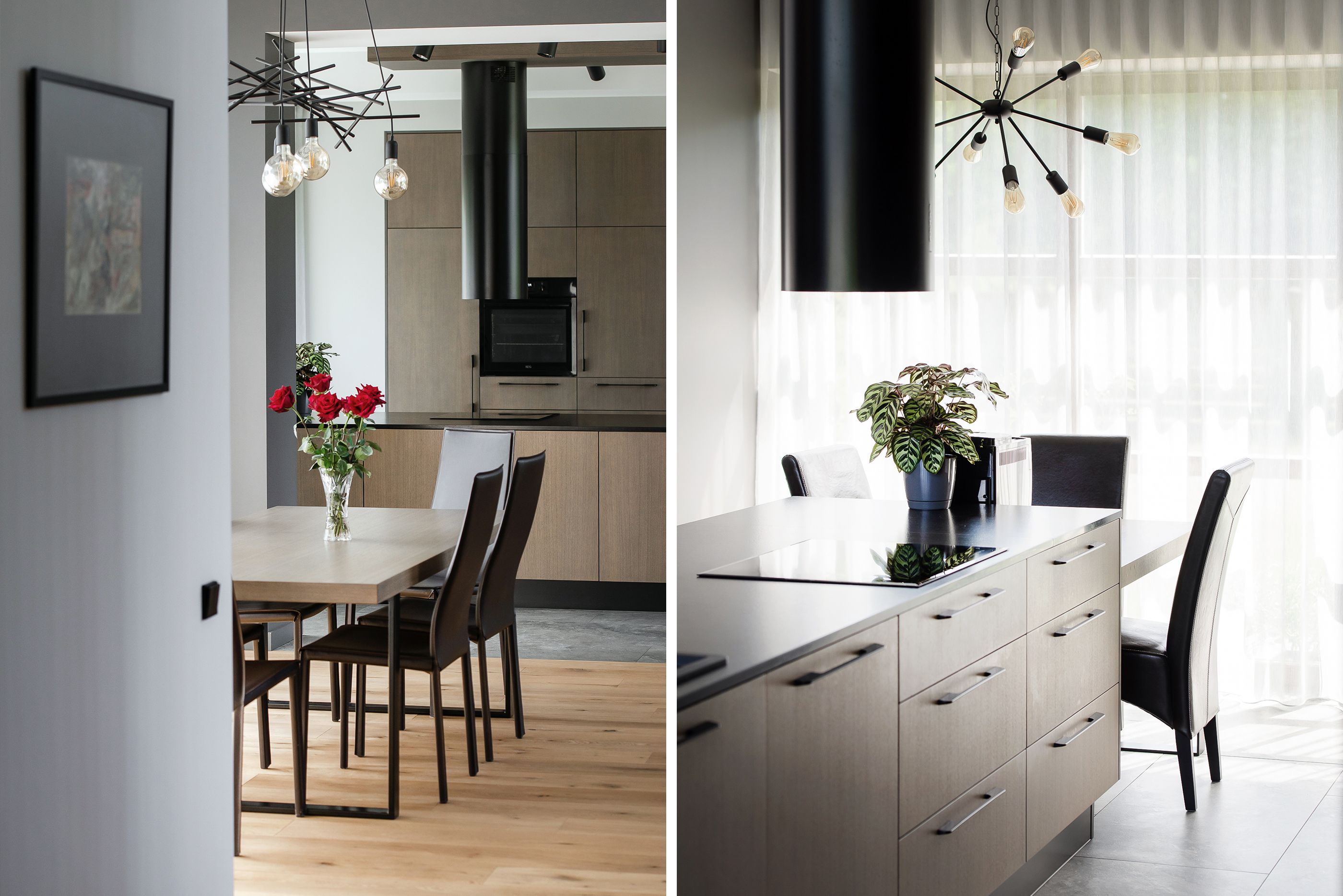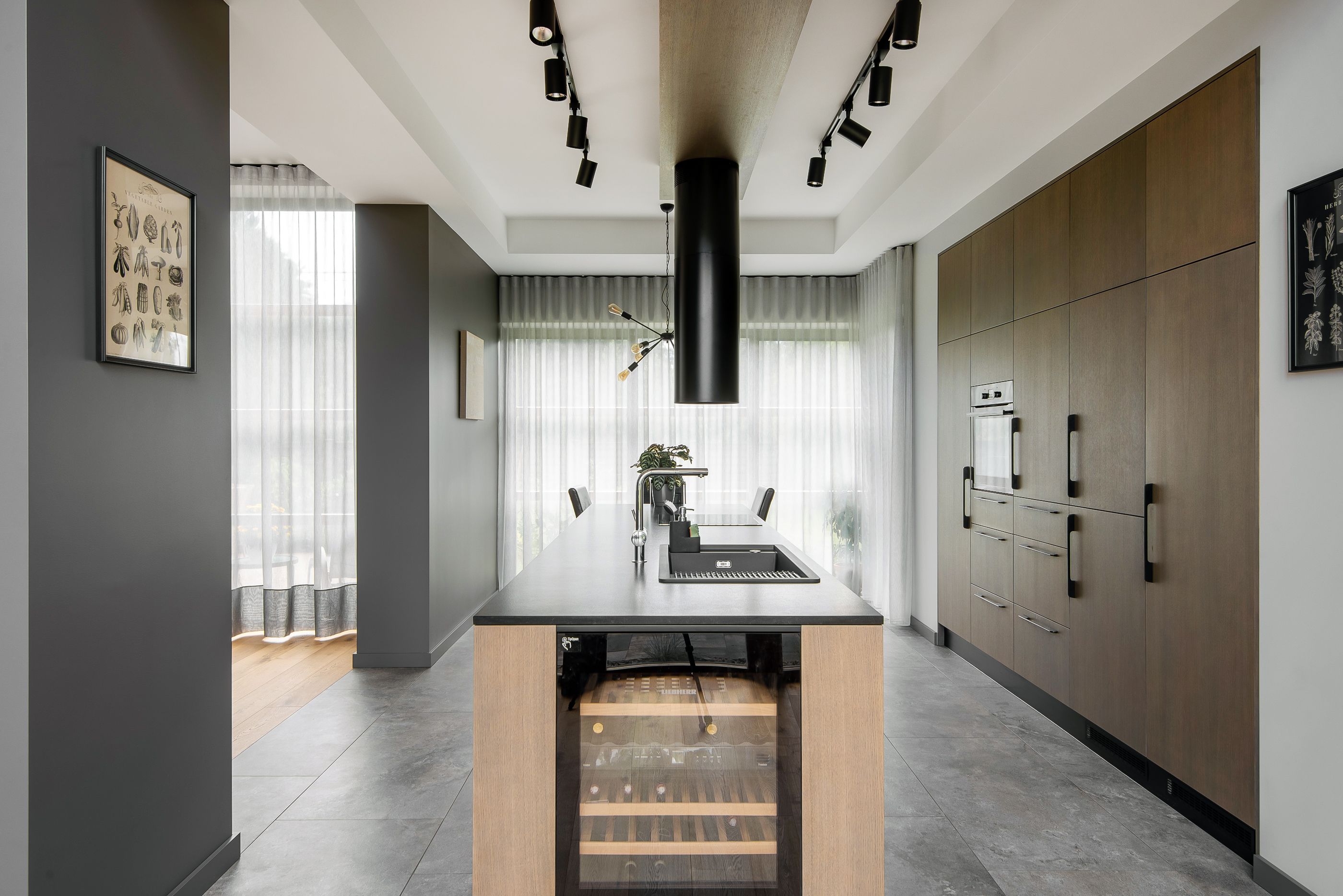 Mājas plānojums - centrā ir gaiša un plaša dzīvojamā istaba ar kamīnu un panorāmas logiem, modernu virtuvi un ēdamzonu un izeju uz terasi. Vienā daļā atrodas saimnieku guļamistaba ar garderobi un savu privāto vannas istabu un saunu, savukārt, otrā daļā ir 3 atsevišķas guļamistabas, savs sanmezgls ar dušu. Vienai no guļamistabām ir otrais stāvs.