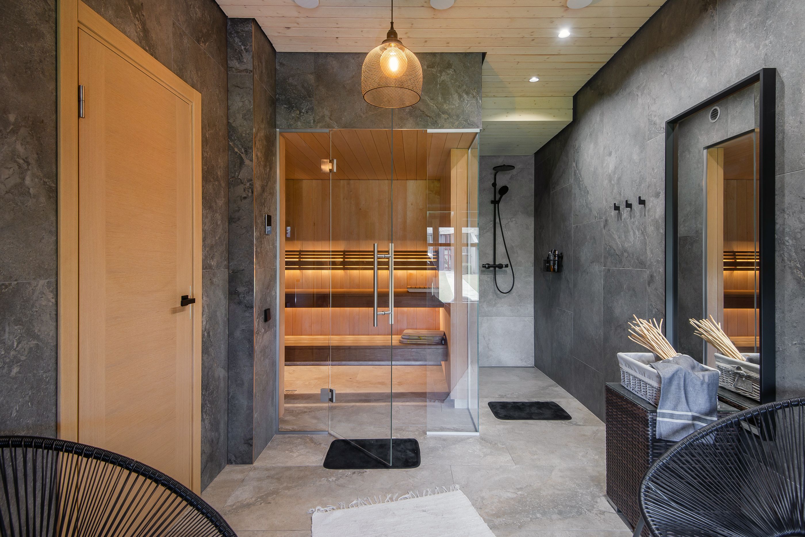 Viesu mājas / pirts plānojums - viesistaba apvienota ar virtuvi, sauna un sanmezgls, otrajā stāvā ir guļamistaba. Pirts terasē ir āra kamīns. Pirts māju var izmantot ne tikai svinībām, bet arī autonomai dzīvošanai.