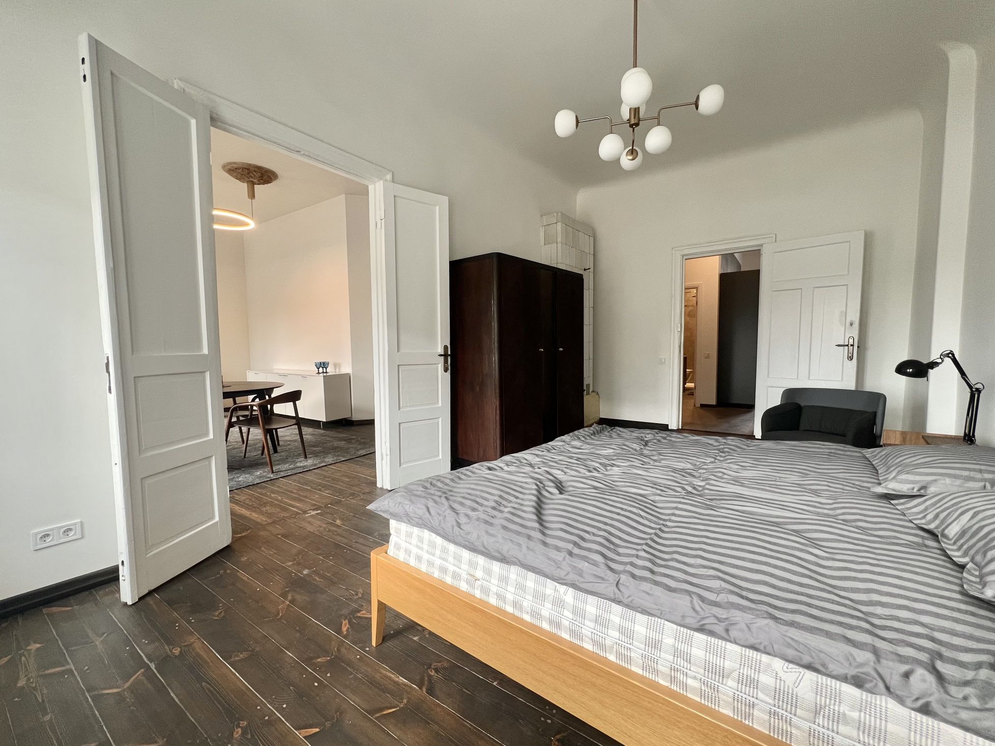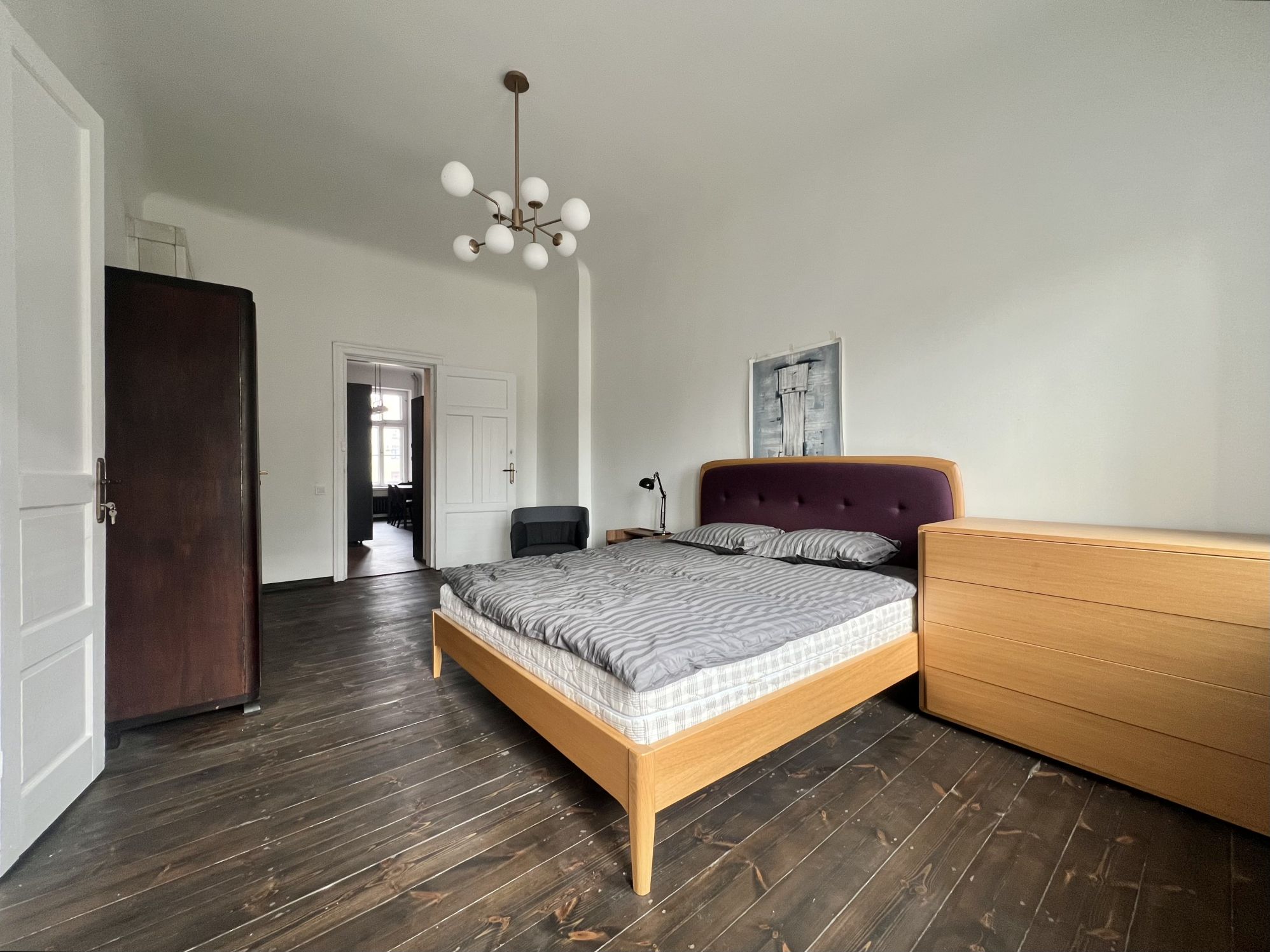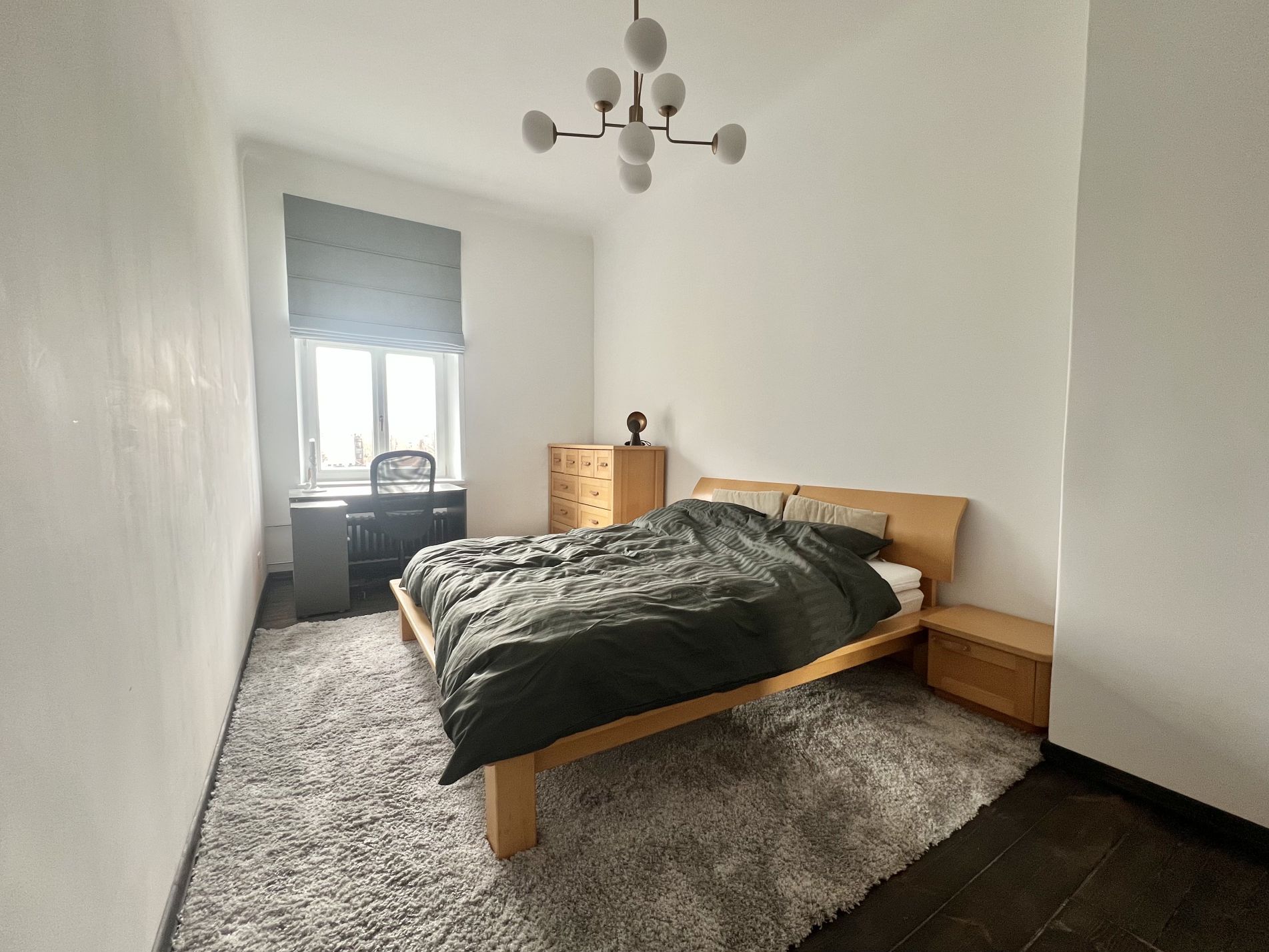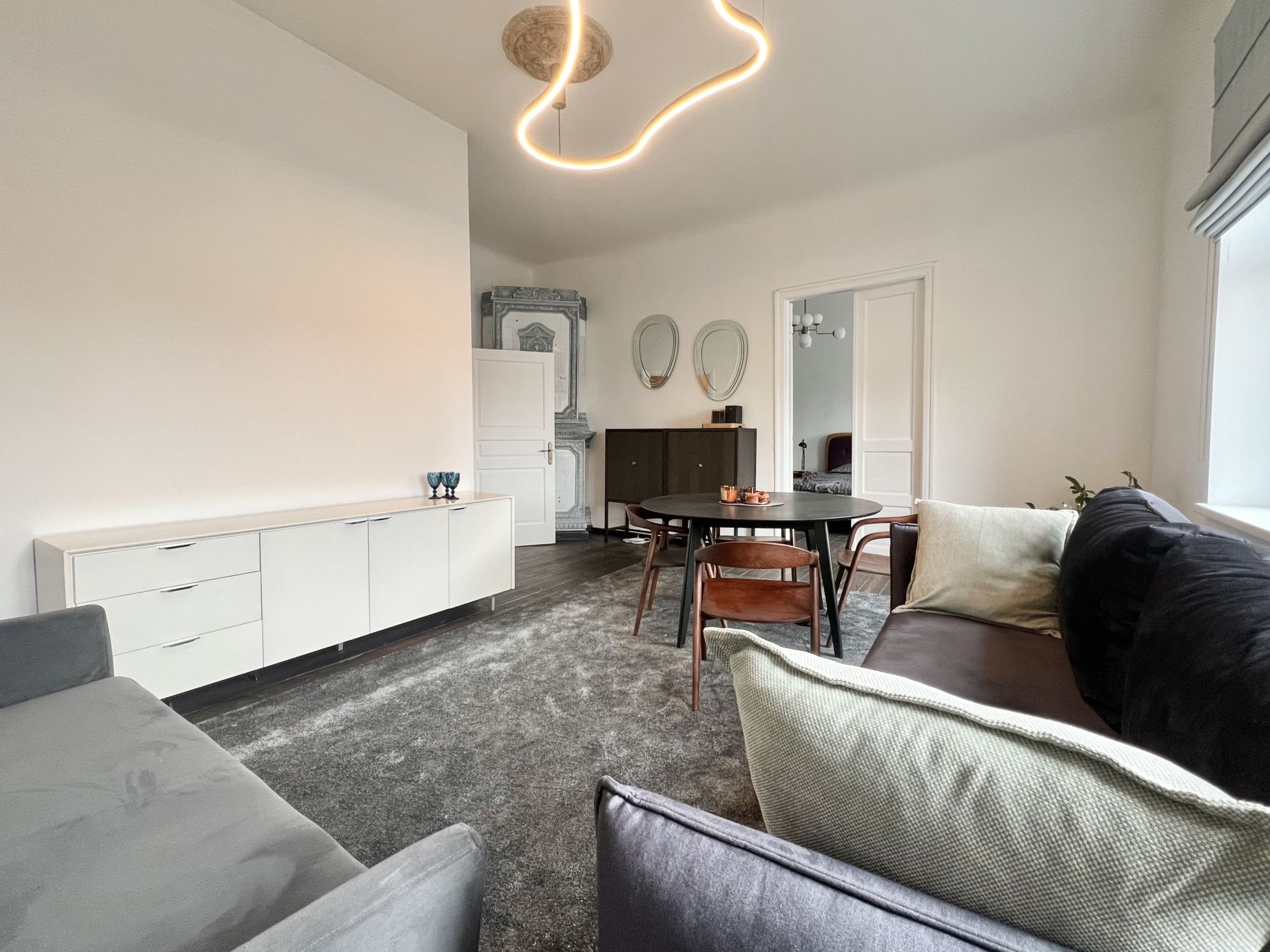 Dzīvoklī ir divas atsevišķas guļamistabas un plaša dzīvojamā istaba. Gaumīgs interjers ar tumšām koka grīdām un mājīgu atmosfēru. Saglabāti vēsturiskie elementi, kas apvienoti ar visu nepieciešamo ērtai ikdienas dzīvei.